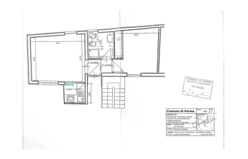 L'appartamento è composto da una cucina abitabile con doppia finestra, una camera matrimoniale, un bagno con finestra e un comodo ripostiglio anch'esso dotato di finestra.