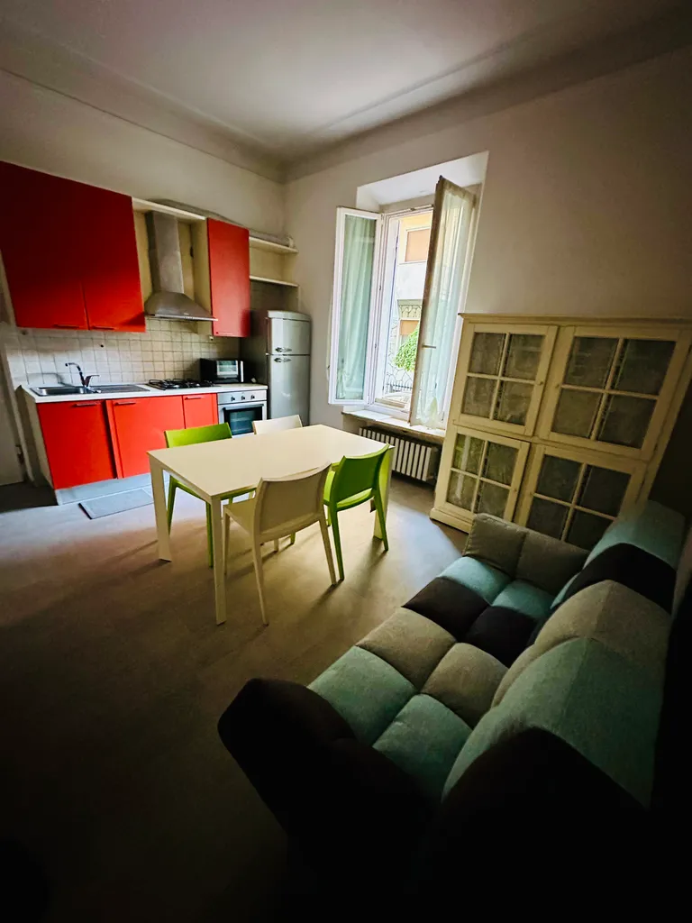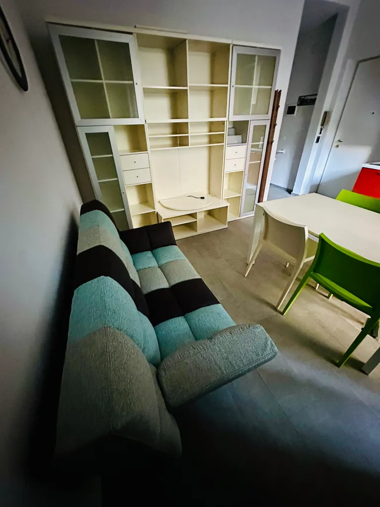 L’immobile è composto da ampio open space cui si accede entrando: la cucina a vista e la zona soggiorno offrono una situazione piacevole e funzionale. Un piccolo disimpegno conduce alla camera matrimoniale e al bagno finestrato. In mezzo ai due vani si trova un locale tecnico con caldaia e lavatrice, E' in dotazione dell'immobile una cantina. Il riscaldamento è autonomo. Gli arredi saranno integrati con divano di design. Nelle spese condominiali è compresa l'utenza acqua.