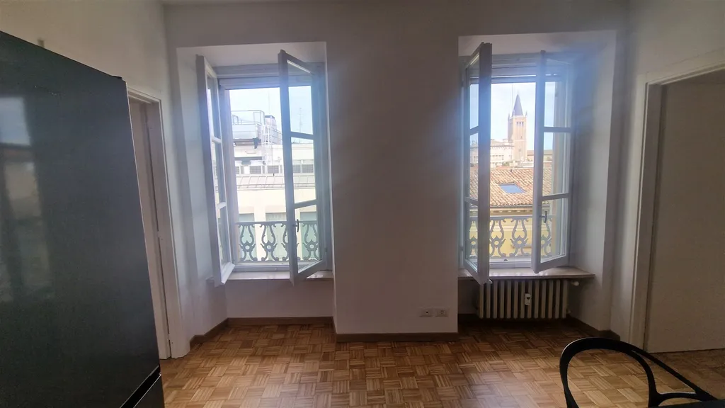 Rif. SUP092 - PARMA AFFITTASI APPARTAMENTO CENTRO STORICO ADIACENZE PIAZZA GARIBALDI. In condomino in ottime condizioni affittiamo delizioso e luminoso appartamento completamente ristrutturato al piano 4 con ascensore. L'appartamento risulta così composto: ampio soggiorno completamente arredato con angolo cottura, camera da letto matrimoniale arredata, seconda camera con armadio, bagno doccia con lavatrice e cantina al piano . Tutti gli arredi sono nuovi e così gli elettrodomestici e i materassi. Piano cottura ad induzione, frigo con freezer e forno. Tinteggio nuovo. Spese condominiali note circa euro 900 anno comprensive di luce e pulizia scale, ascensore e acqua fredda. Riscaldamento centralizzato con termovalvole e conta calorie. Affacci su piazzetta con solo passaggio pedonale e vista del Duomo di Parma. Deposito cauzionale tre mensilità . Solo referenziati. Richiesta canone euro 1200 mese