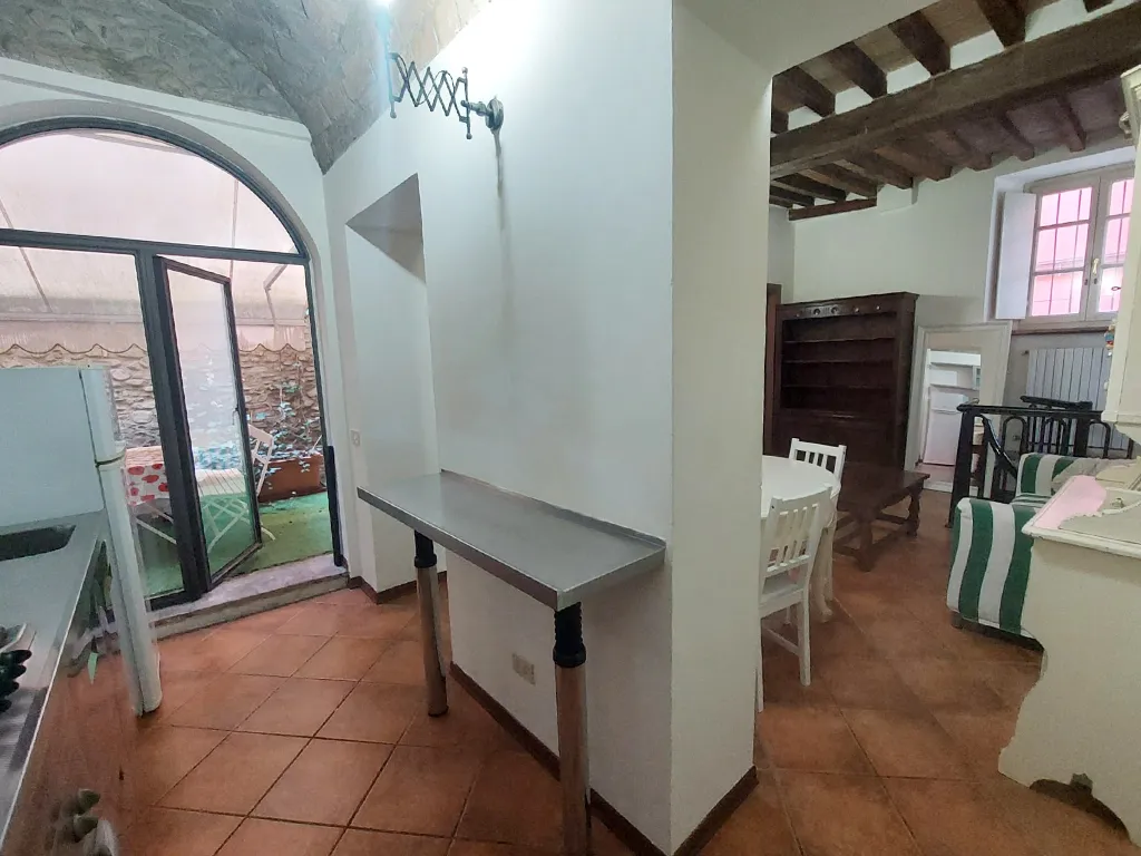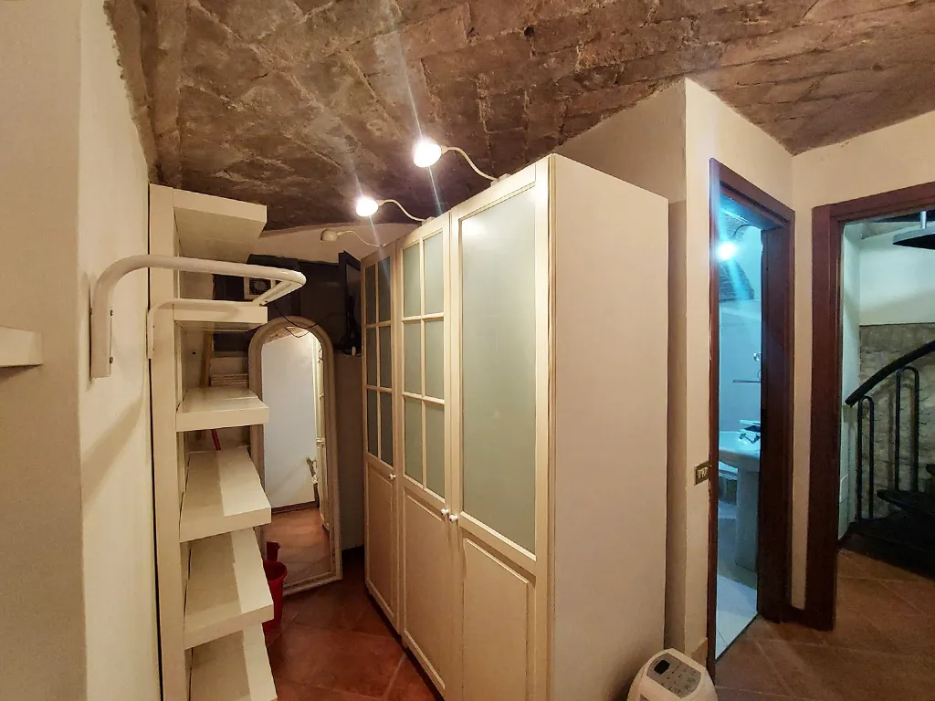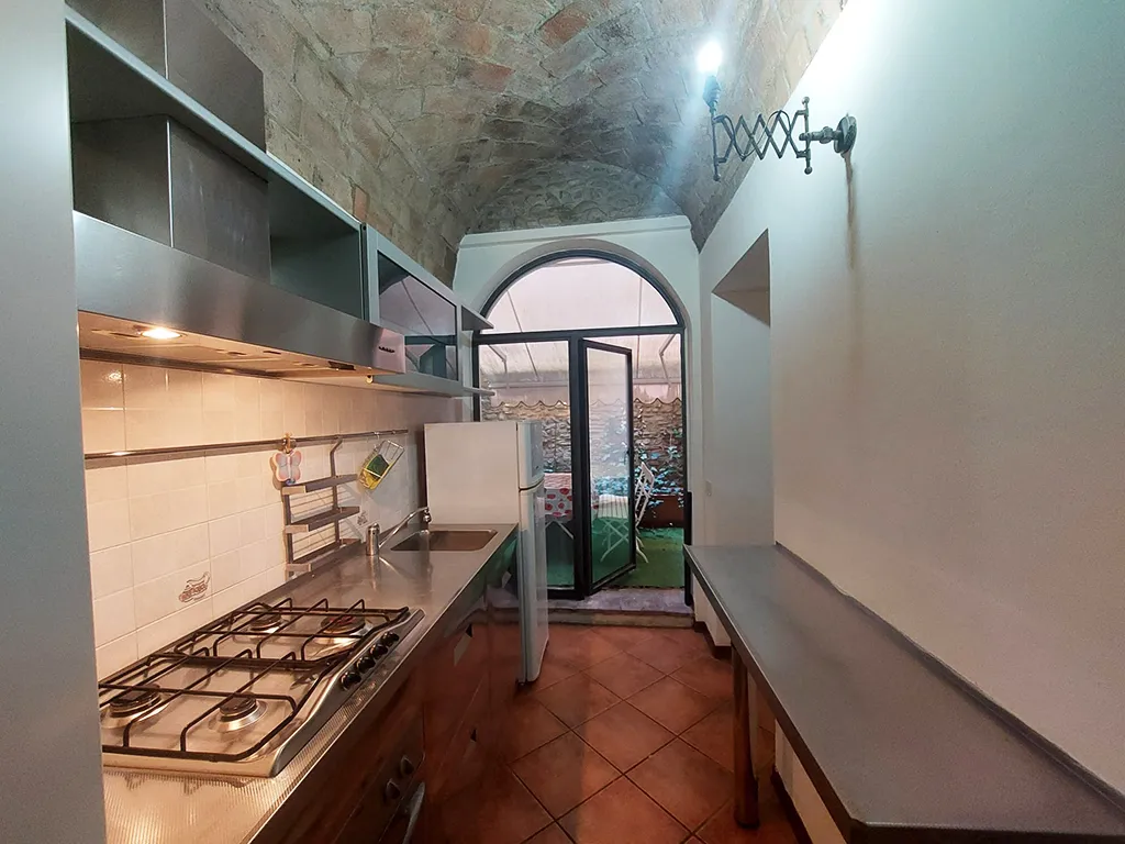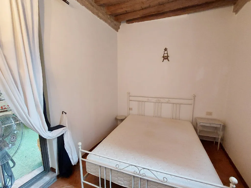 L'appartamento è disposto su due livelli, al piano terra soggiorno con angolo cottura con sbocco diretto sul cortile e camera matrimoniale.
