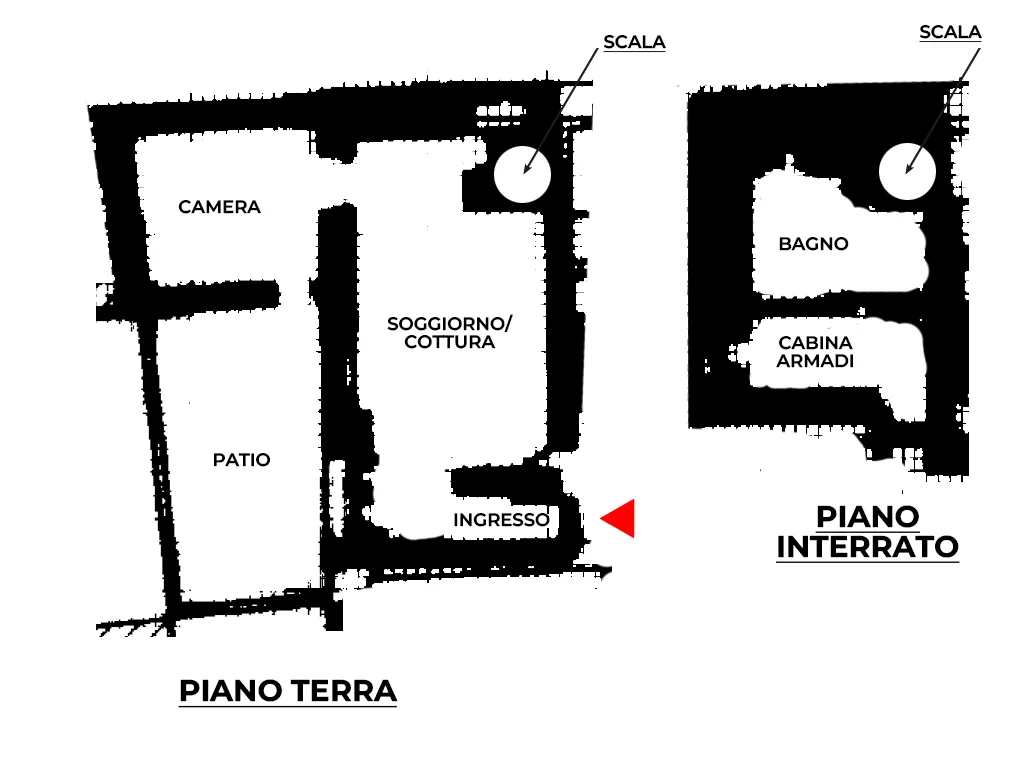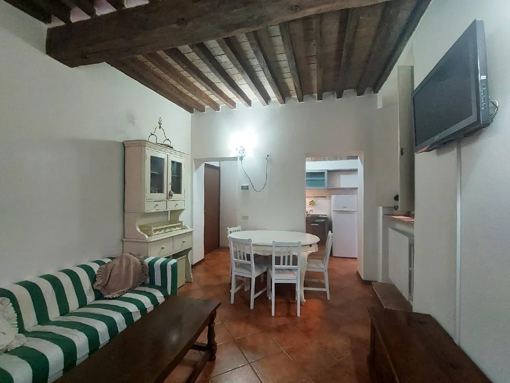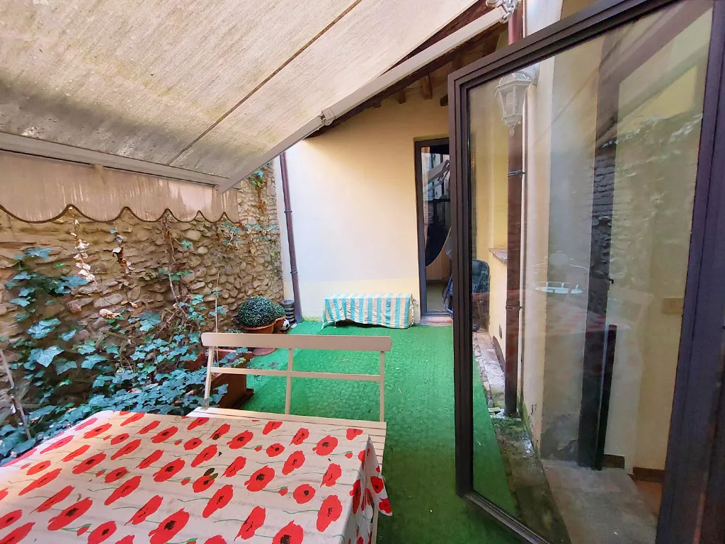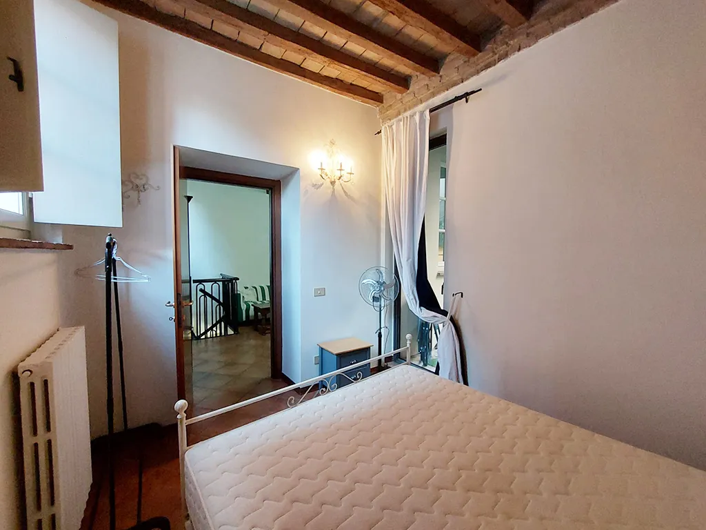 L'appartamento è disposto su due livelli, al piano terra soggiorno con angolo cottura con sbocco diretto sul cortile e camera matrimoniale.