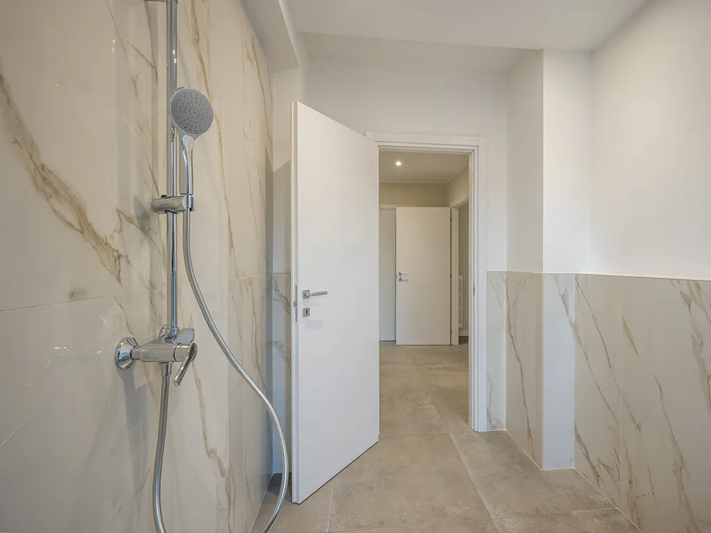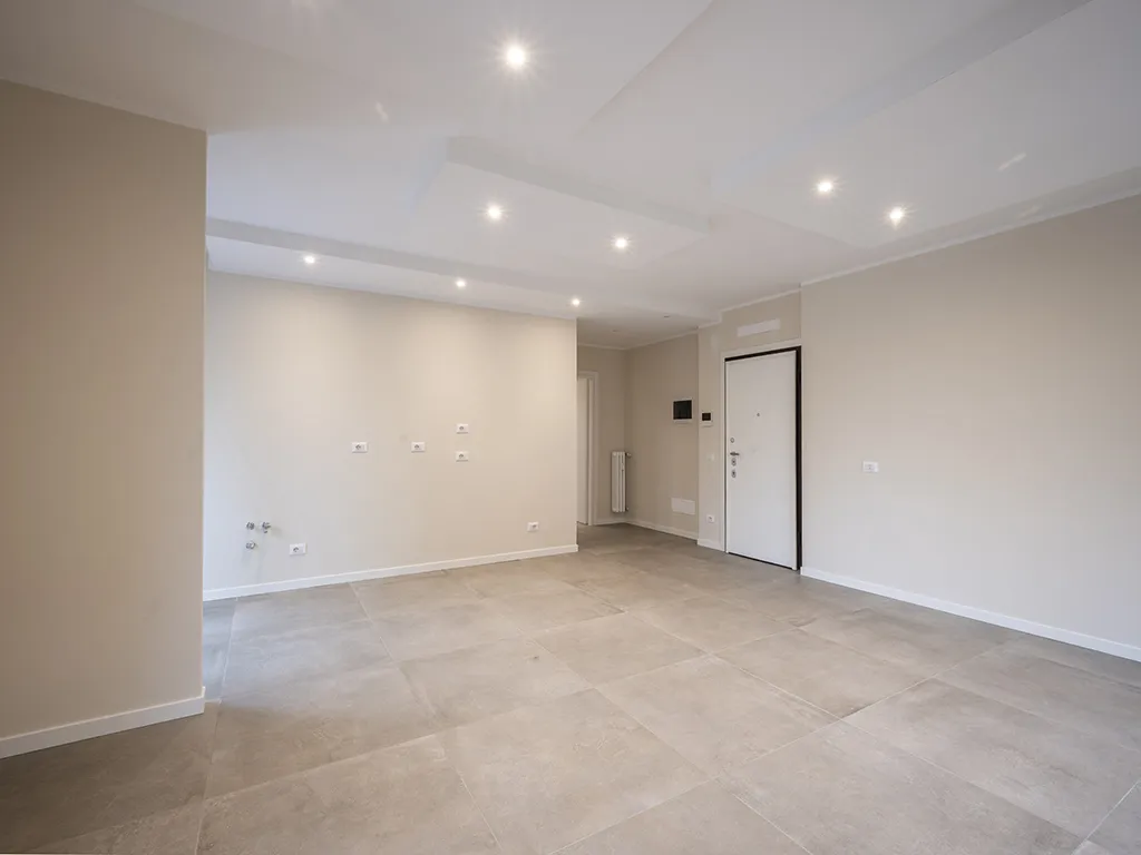 Pavimenti in gres porcellanato cm 80x80, serramenti in PVC con doppia vetrocamera, predisposizione climatizzazione e impianto allarme, tapparelle elettriche, controsoffitti con faretti incassati a Led, domotica per il controllo da remoto.