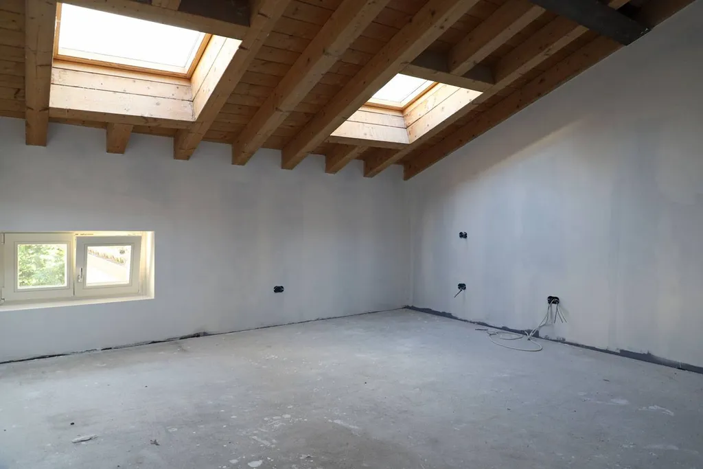Gli ambienti dalle comode altezze definiti dalle travature lignee a vista e l affaccio sul verde, regalano pace e tranquillità.