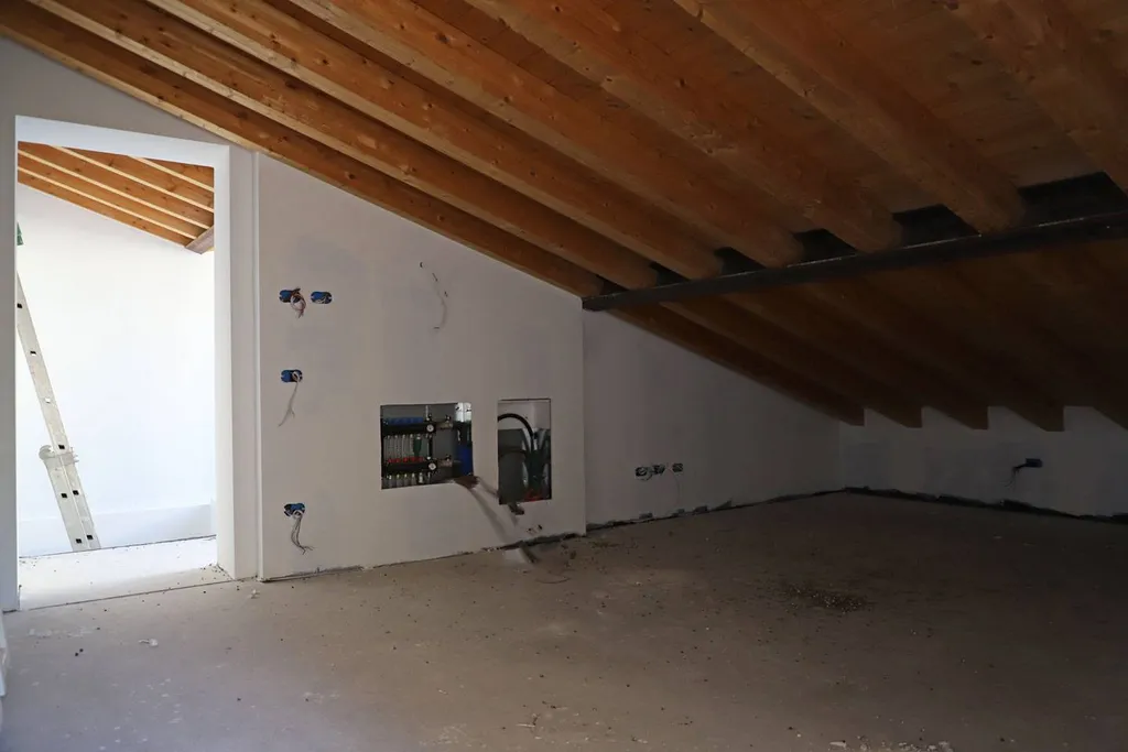 Piano 2°( 53 mq.): ingresso, ampia zona living affacciata con 2 grandi finestre sul giardino interno, angolo cottura, bagno e ripostglio. Una scala a giorno, collega il piano superiore 3° mansardato, di 31 mq. composto da un meraviglioso terrazzino a tasca di 5 mq.c.a. ed un locale di sottotetto open space, dotato di finestra.