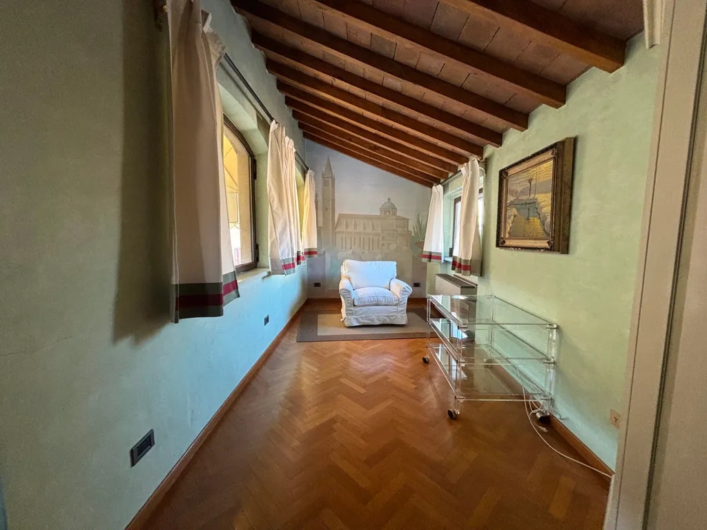 Rif. REG78 - In splendido palazzo d'epoca servito da ascensore, nel cuore del centro storico di Parma, posto al terzo ed ultimo piano, vendesi splendida mansarda in perfette condizioni d'uso, con vista romantica sui tetti e sul campanile del Duomo di Parma, composta da soggiorno con camino, cucina abitabile, zona studio (eventuale seconda camera), camera matrimoniale, bagno, ripostiglio e cantina.