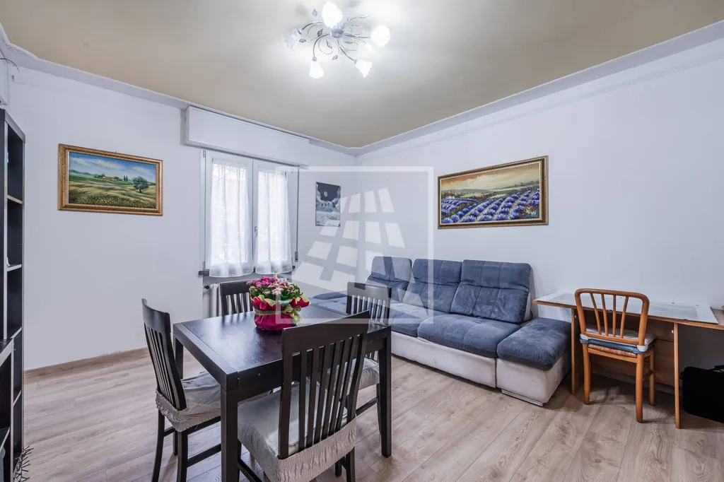Appartamento di generose dimensioni, 110 mq circa, posto al primo piano e caratterizzato da una particolare luminosità e buona distribuzione degli spazi.