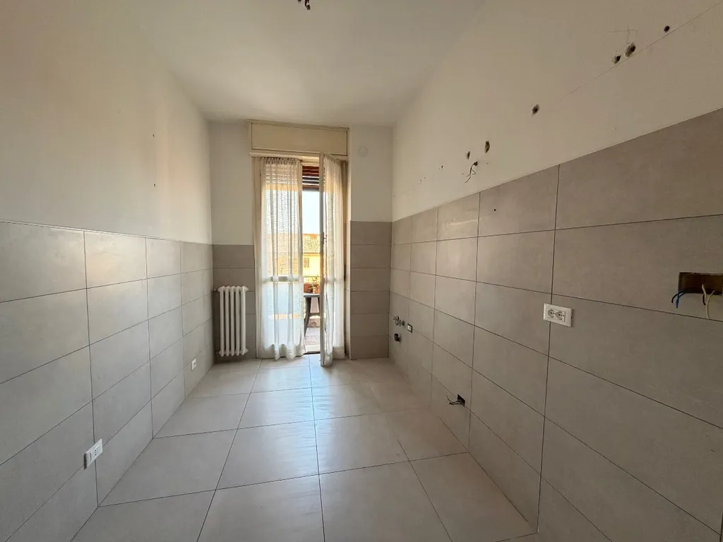 Rif. 3214 - RIF. 3214: Spazioso e luminoso appartamento completamente ristrutturato e climattizzato sito al quarto piano e servito da ascensore, così composto: dall'ingresso si accede comodamente al grande soggiorno, dotato di un ampio balcone che collega anche la cucina abitabile. La zona notte vede due camere matrimoniali di 15 e 16 mq calpestabili, di cui una servita da balcone e bagno privato in camera, una camera singola, un bagno, e un comodo armadio a muro. L'abitazione dispone anche di un ripostiglio nel vano ingresso. A completare l'unità, al piano interrato, troviamo un garage singolo e una spaziosa cantina. L'appartamento si trova a pochi passi dal centro e da tutti i servizi, ed è libero subito.