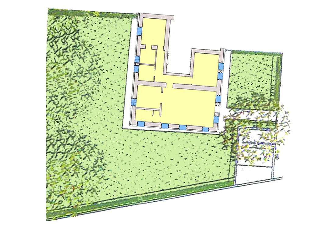 L’appartamento di 120 m², si sviluppa interamente al piano terra ed è circondato da un ampio giardino privato di 650 m².