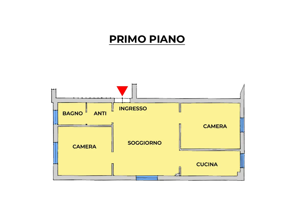 L’immobile è composto da: ingresso, due camere matrimoniali, cucina separata e bagno finestrato.
