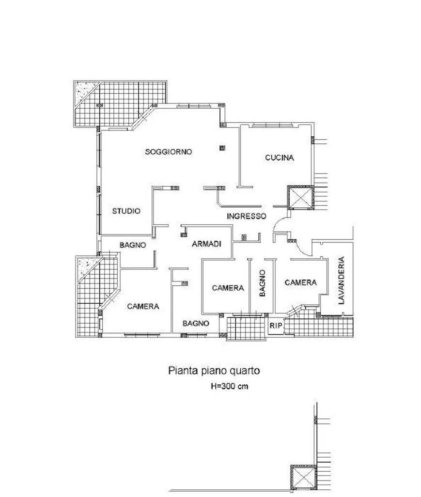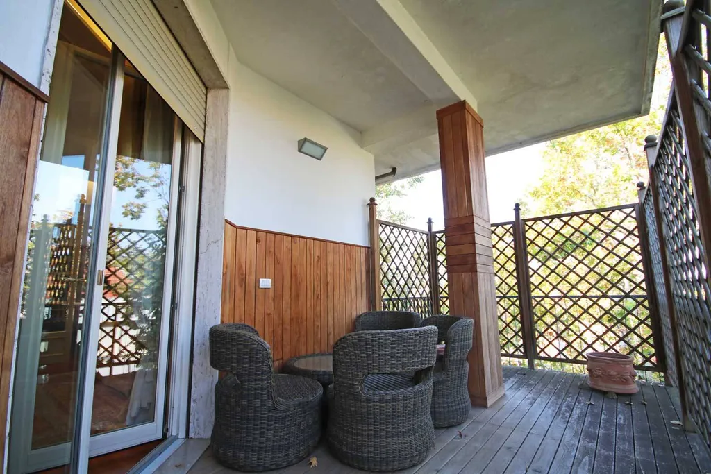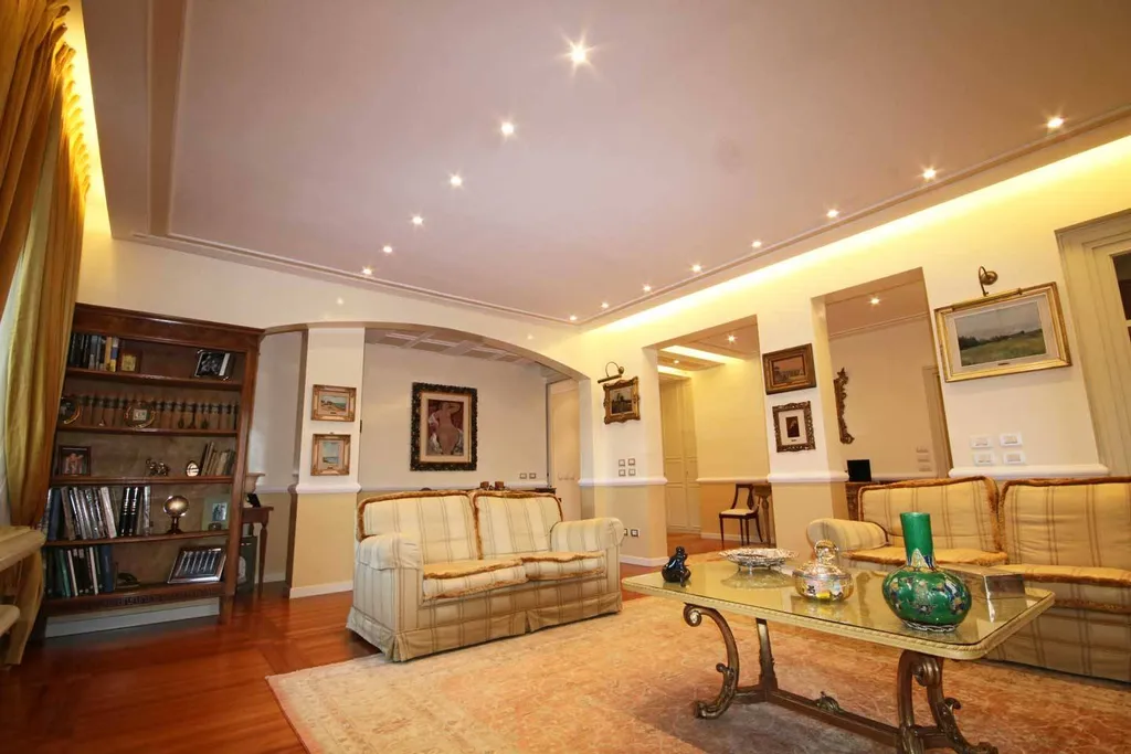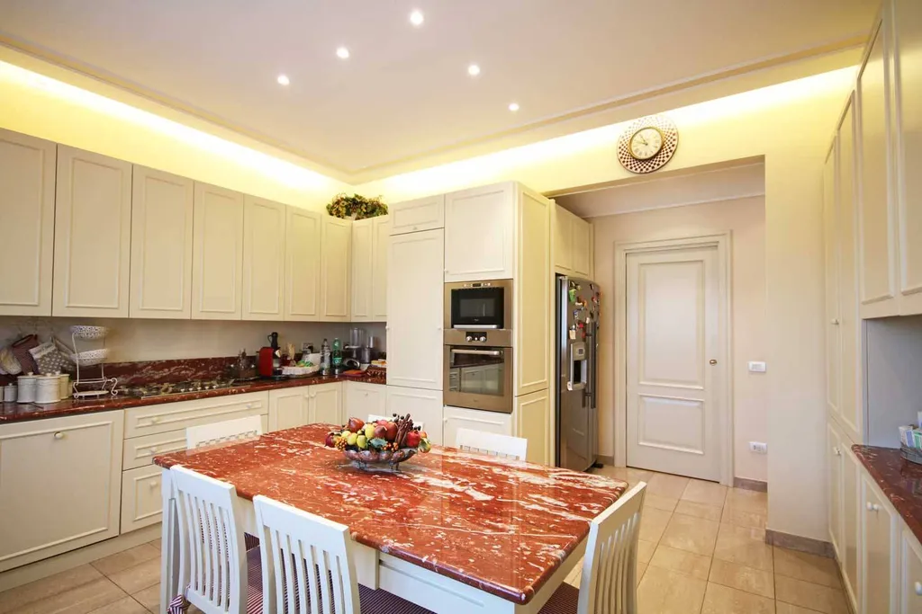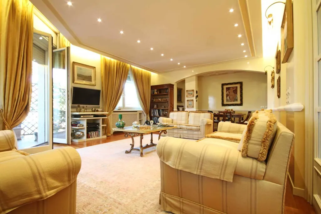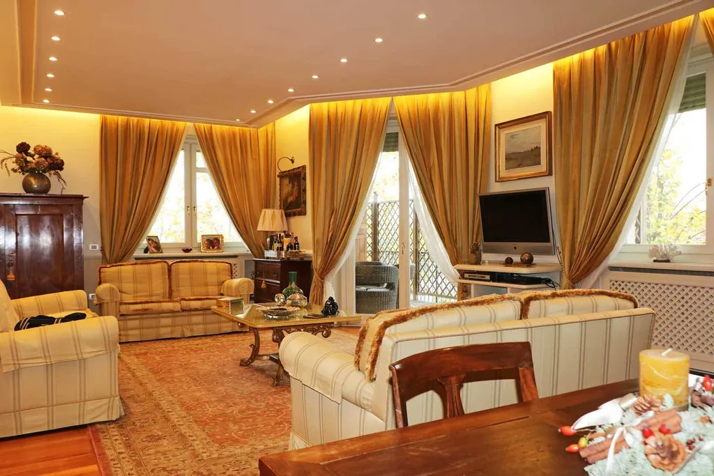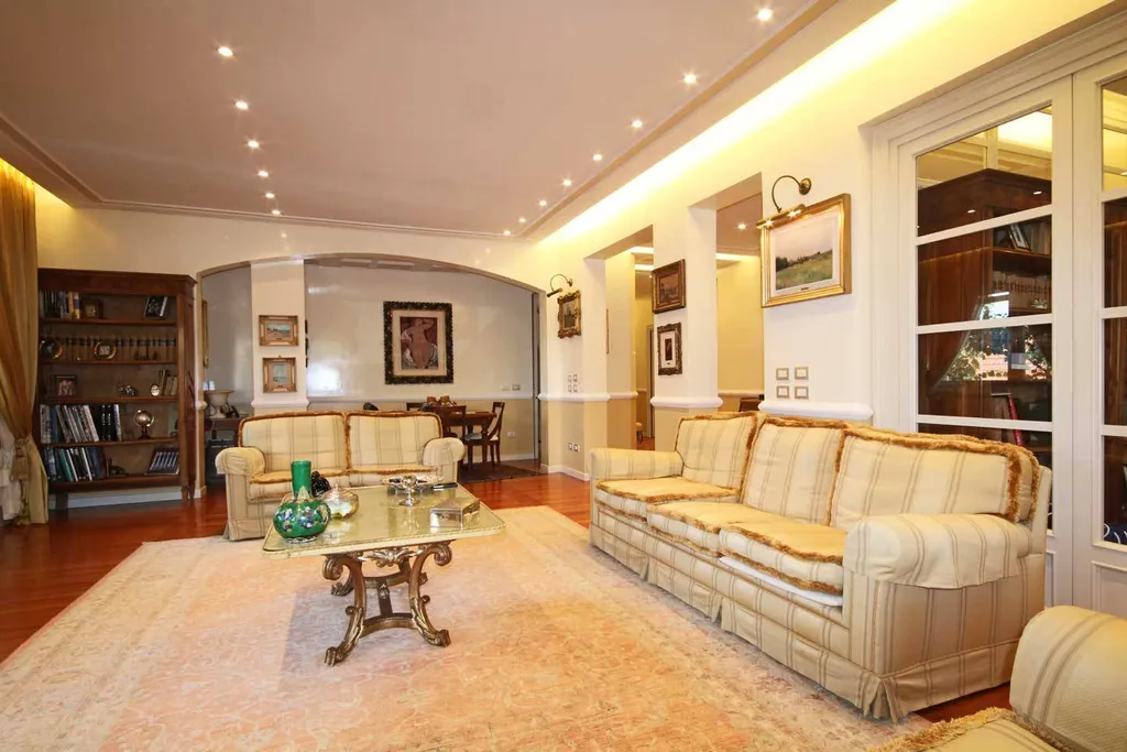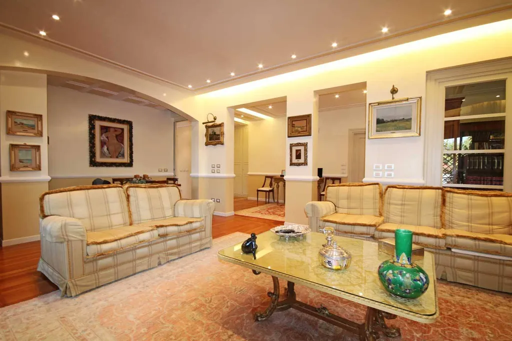 ingresso di rappresentanza con guardaroba, importante salone affacciato sul loggiato ad angolo, studio. Grande cucina abitabile con office. Il reparto notte è diviso in 2 zone. La prima zona notte è dedicata alla camera padronale con affaccio sull ampio loggiato ad angolo, doppi servizi con fienstra. Altra zona notte: 2 camere da letto doppie, bagno, ampio stanza ad uso zona lavanderia, eventuale utilizzabile come stanza donna di servizio. Possibilità di acquistare l immobile arredato. Cantina.