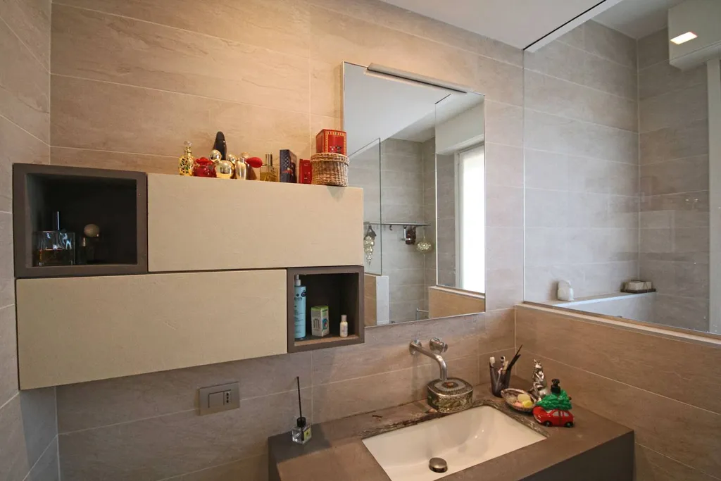 Gli ambienti, rinnovati nel 2014/2015, sono valorizzati da pavimentazioni in resina nella zona giorno, legno in rovere a listoni nella zona notte, grandi serramenti scorrevoli in legno laccato con vetro camera. La dotazione impiantistica prevede aria condizionata canalizzata, impianto elettrico con domotica, ed mpianto d' allarme.