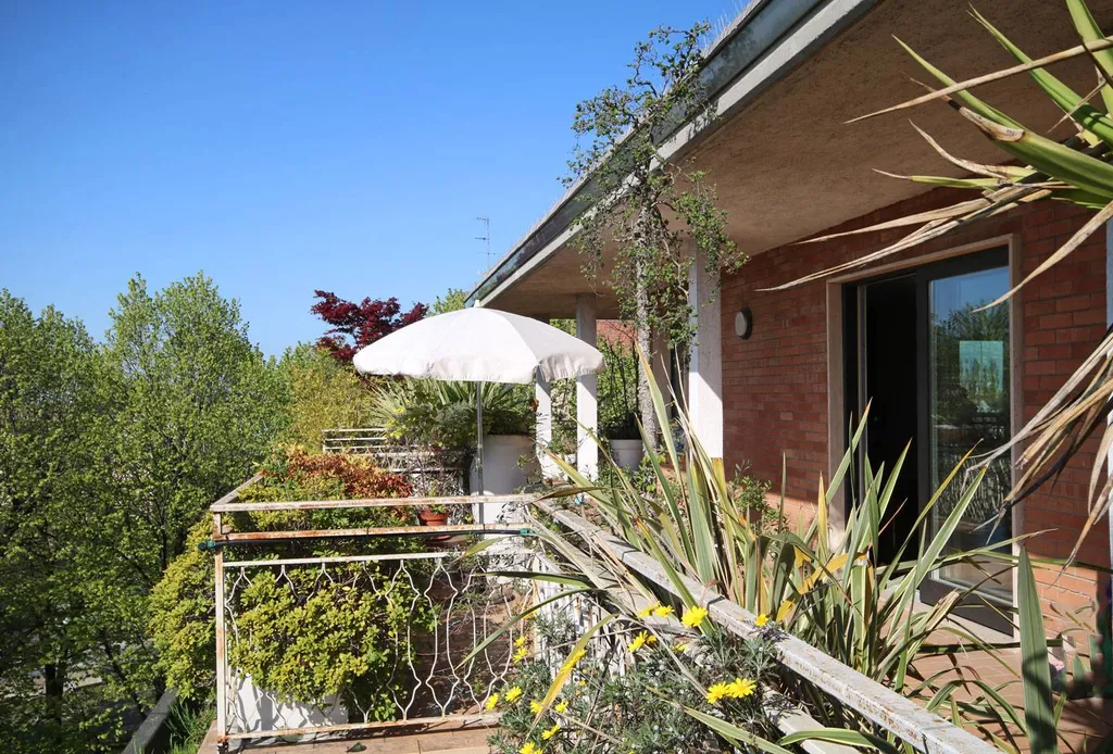 Percorrendo il terrazzo si ha limpressione di essere sospesi fra terra e cielo, baciati dalla luce del giorno, in un fluire discreto del fruscio delle foglie degli alberi che accompagnano la quotidianità di chi vive nellattico, come un quadro che ogni giorno varia sia nei colori che nei profumi con lo scorrere del tempo.