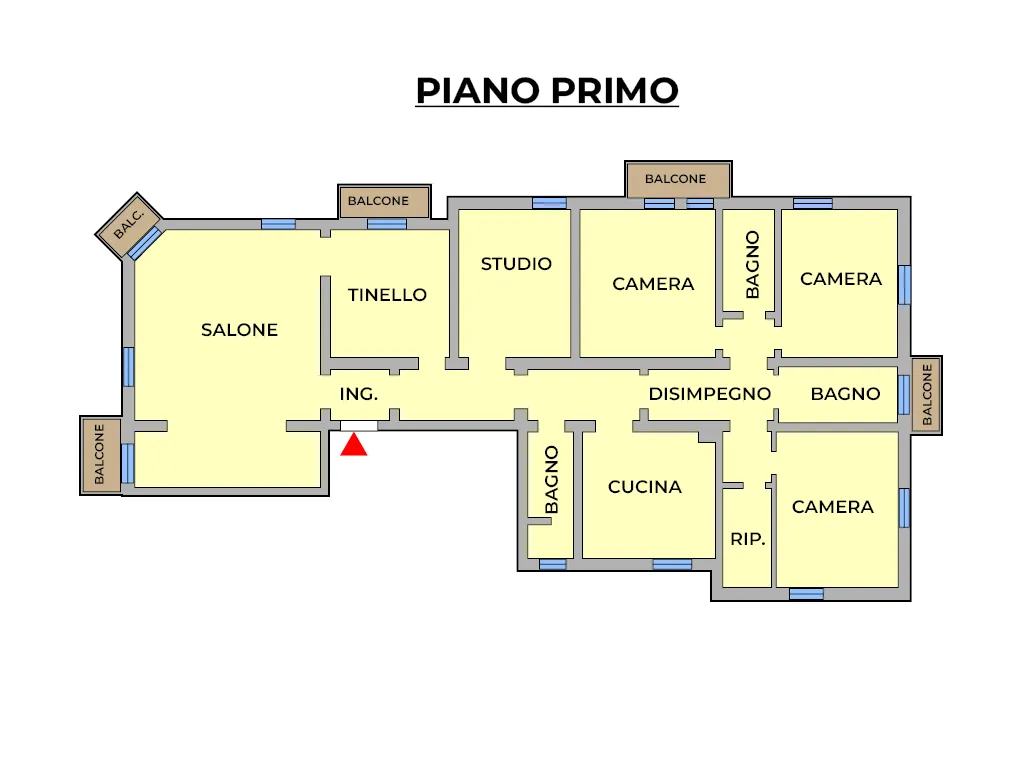 La proprietà si compone di ampio ingresso, salone, tinello e cucina abitabile, tre camere letto (possibilità 4^), due bagni, lavanderia e 5 balconi.