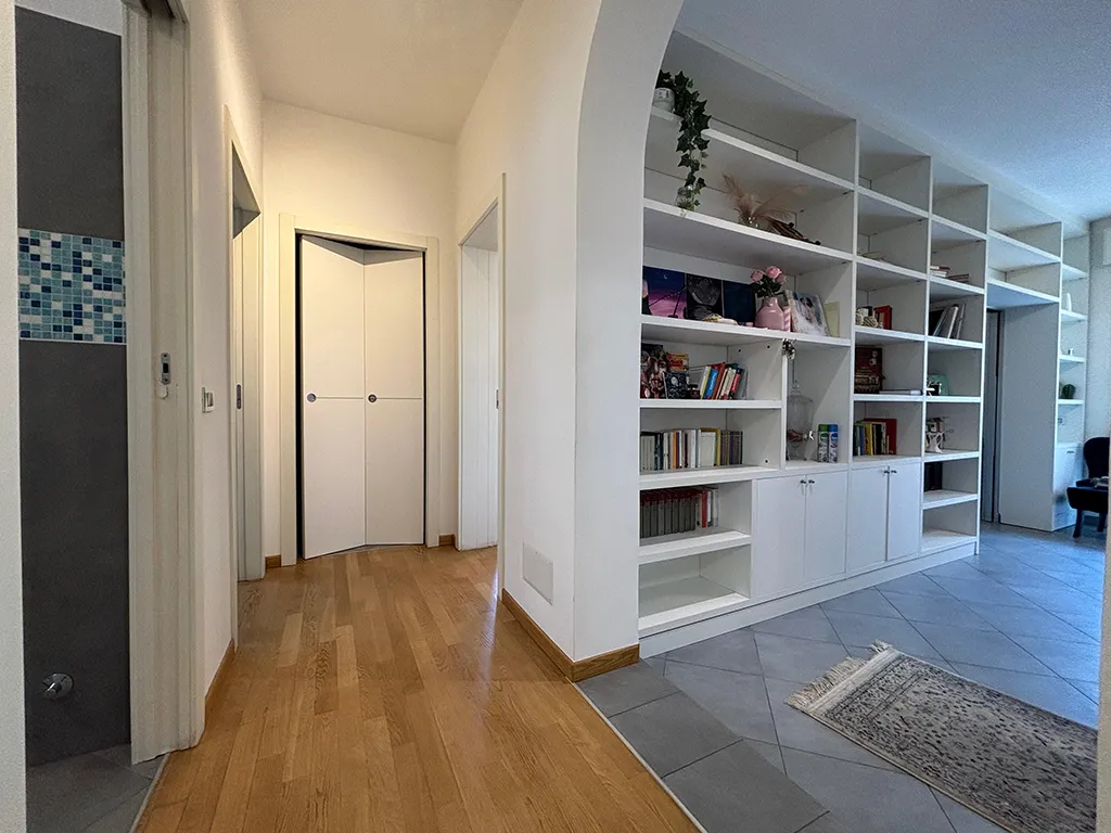Gradevoli pavimenti in legno nella zona notte.