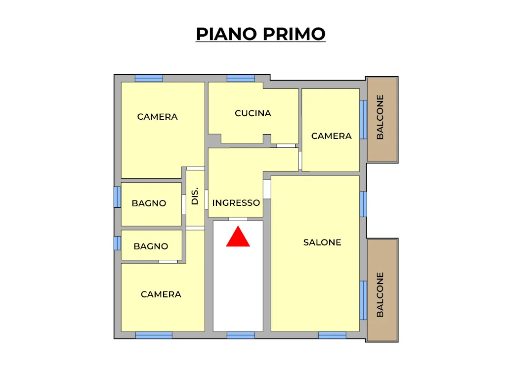 L'immobile è così distribuito: ingresso, doppio salone, cucina abitabile, 3 camere, 2 bagni, 2 balconi.