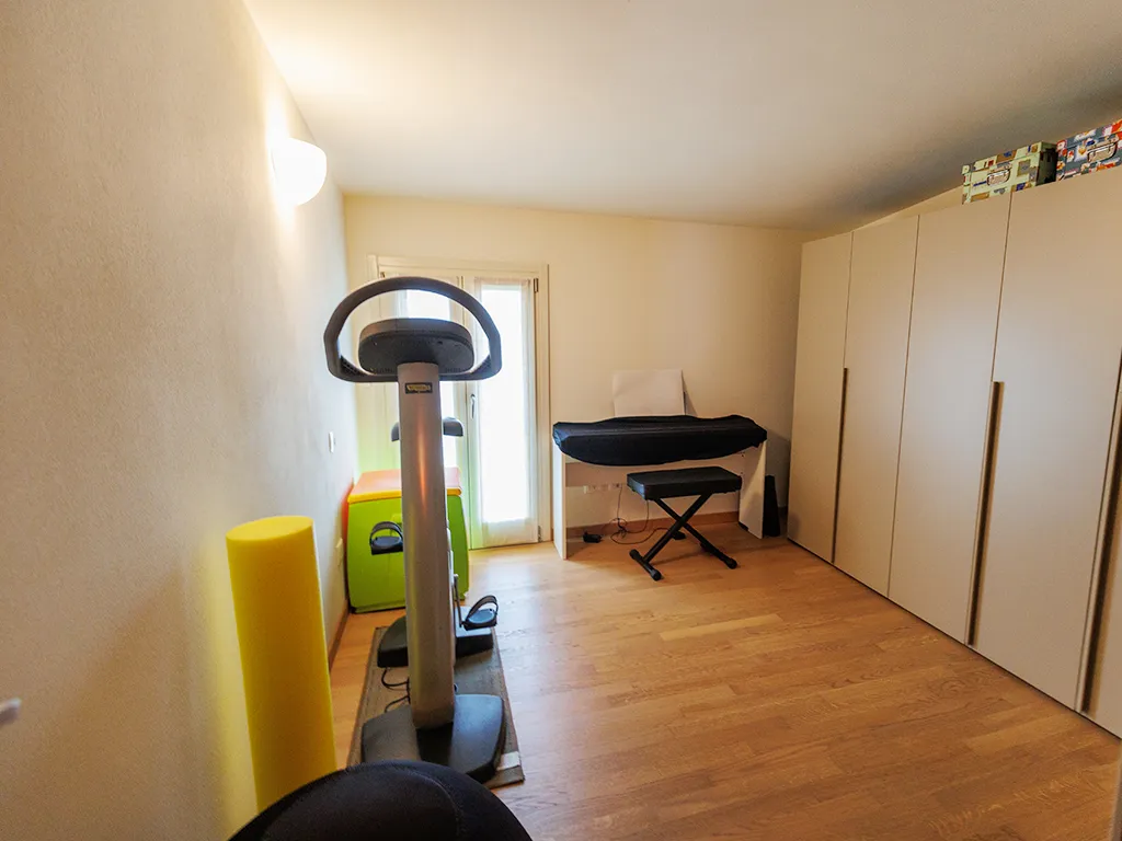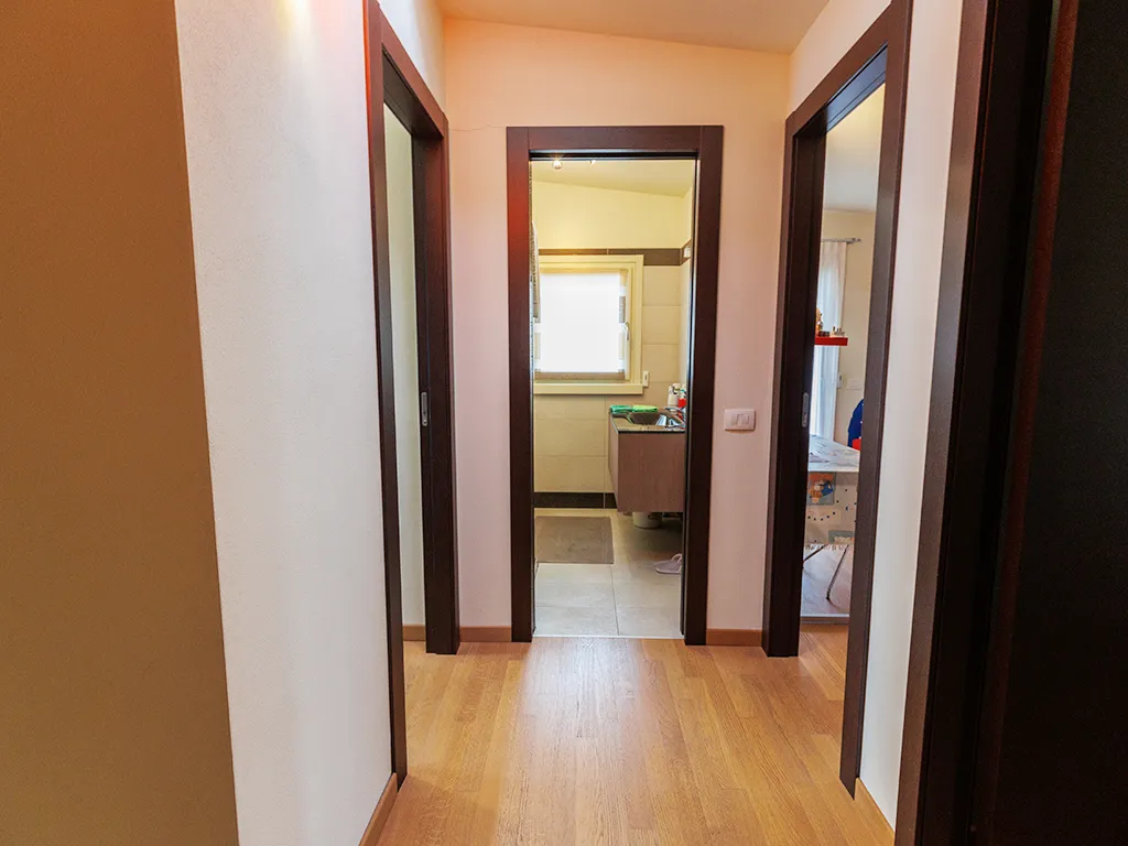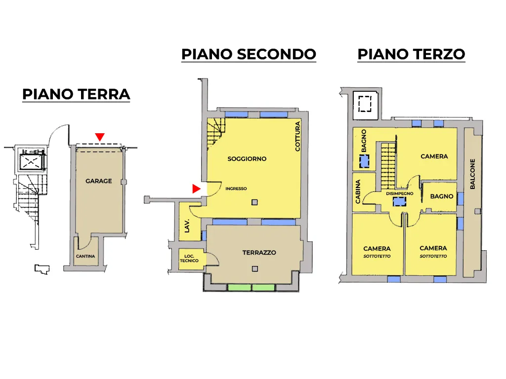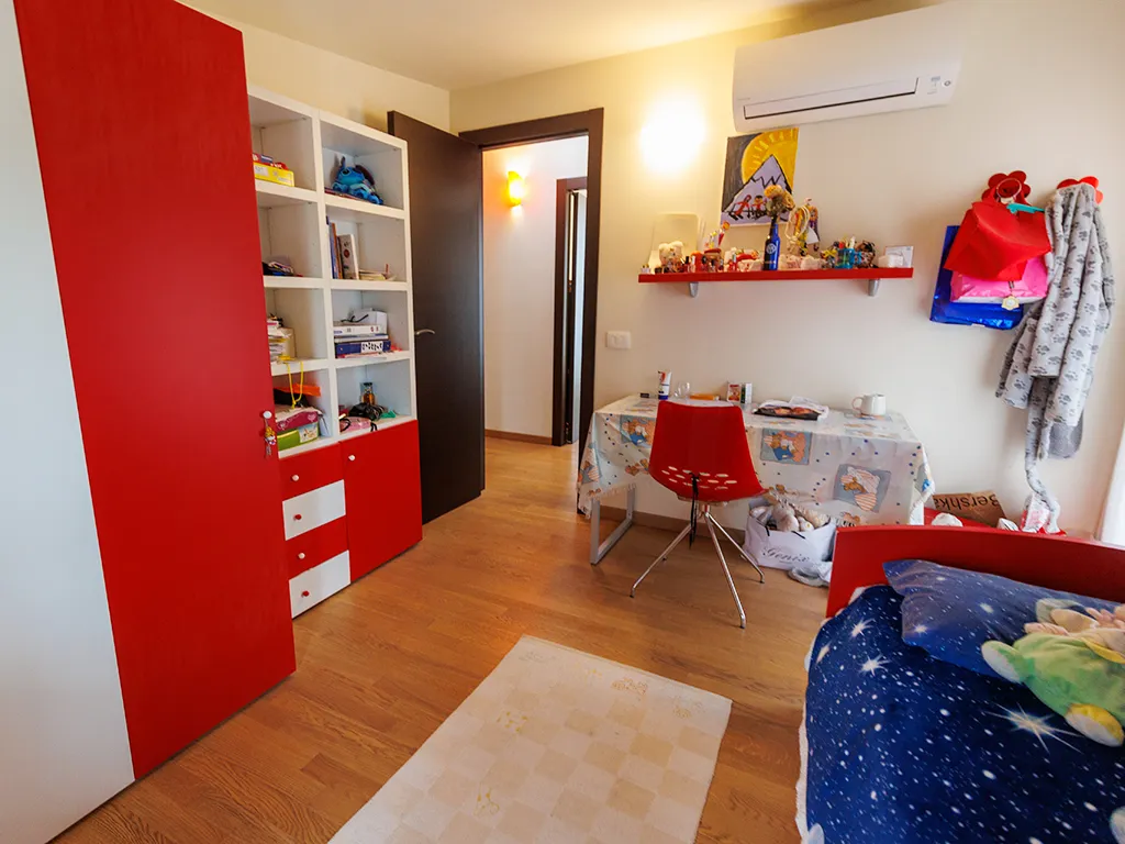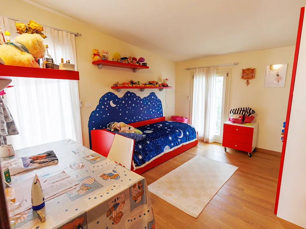 al piano superiore, camera matrimoniale con bagnetto privato, 2 camere singole accatastate sottotetto ma con un balcone ed una cabina armadi.