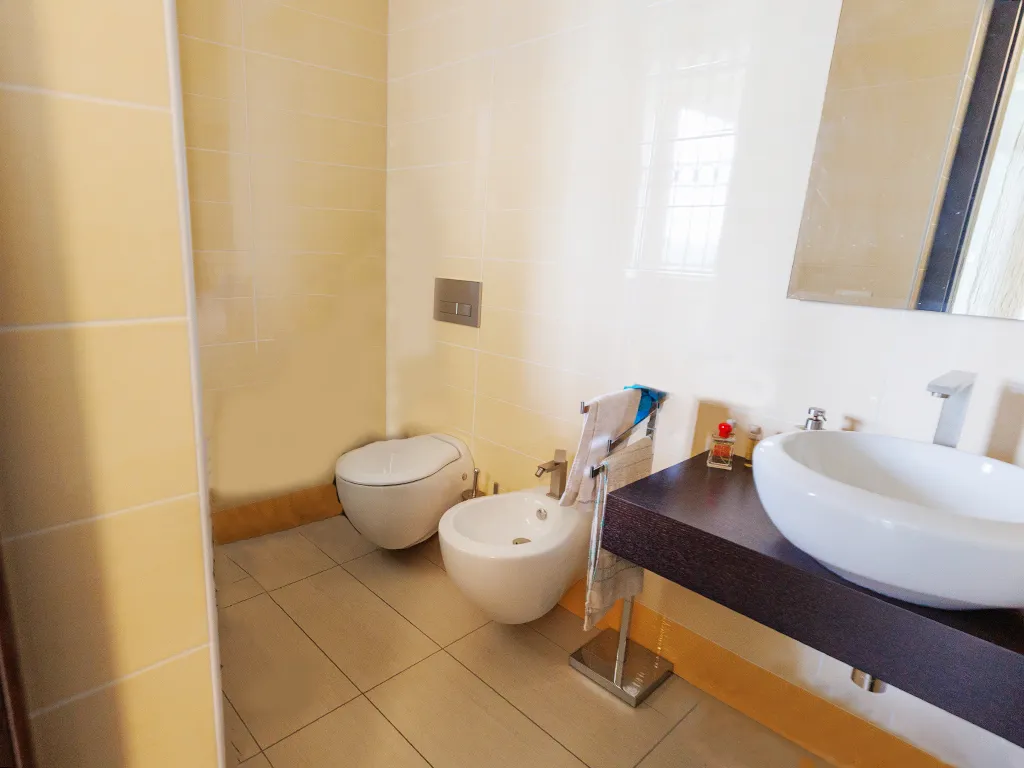 Completano la proprietà un garage, dotato di bascula automatica, con annessa la cantina e un posto auto assegnato in uso esclusivo nel cortile condominiale.