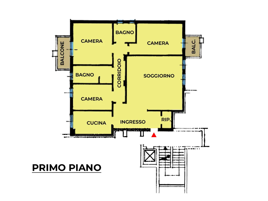 La proprietà si compone di ampio soggiorno e cucina abitabile, 3 camere letto, 2 balconi, 2 bagni entrambi finestrati e ripostiglio.