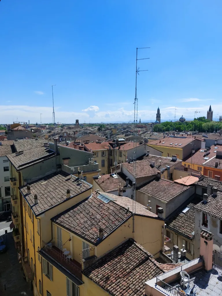 Rif. LANV61 - VIA VERDI vendiamo un appartamento all'ultimo piano caratterizzato da una splendida vista panoramica sui tetti e sui monumenti del centro storico. All'interno l'appartamento si compone di un ingresso, un bel soggiorno con balcone esposto a sud, la cucina abitabile anch'essa con balcone, una camera matrimoniale, due camere singole, due bagni entrambi finestrati, due ripostigli; di pertinenza una cantina al piano interrato. L'unità immobiliare è stata oggetto di ristrutturazione una decina di anni fa. Classe energetica F. Per maggiori informazioni contattare i seguenti numeri: 0521 239594 e 3355359553