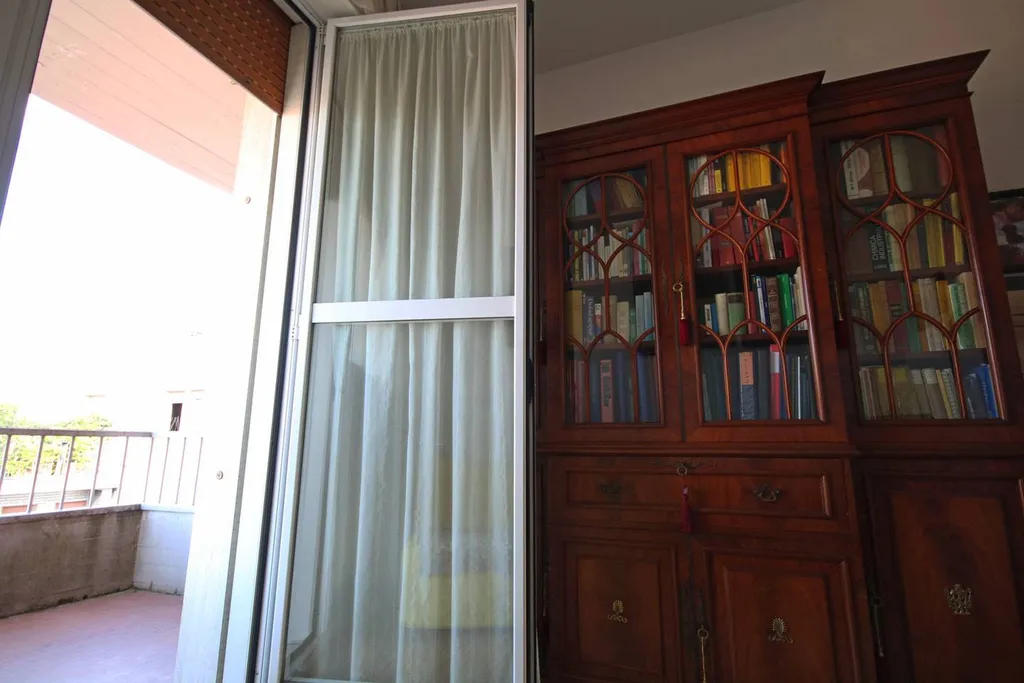 All interno composto da: ingresso, ampio salone con balconi affacciati sul centro storico, cucina abitabile dalle generose dimensioni a seguire studio con loggiato. Zona notte: due comode camere da letto matrimoniali ed una singola adattabile a studio, tutti affacciati sui balconi, due bagni finestrati.