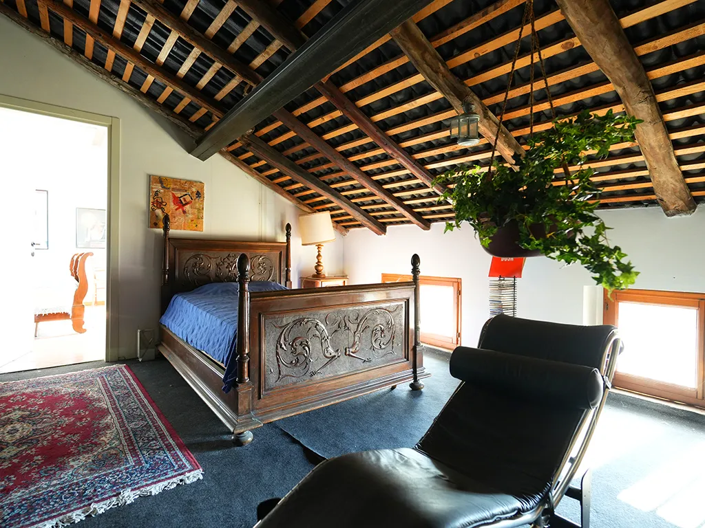 Al secondo piano, si trova un luminoso salone con caratteristici soffitti a cassettoni con tranquilli affacci a sud, una cucina abitabile di 20 m², una camera matrimoniale e un bagno con finestra.