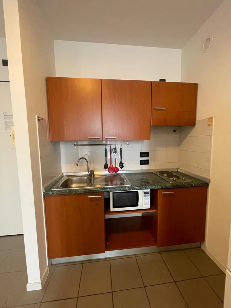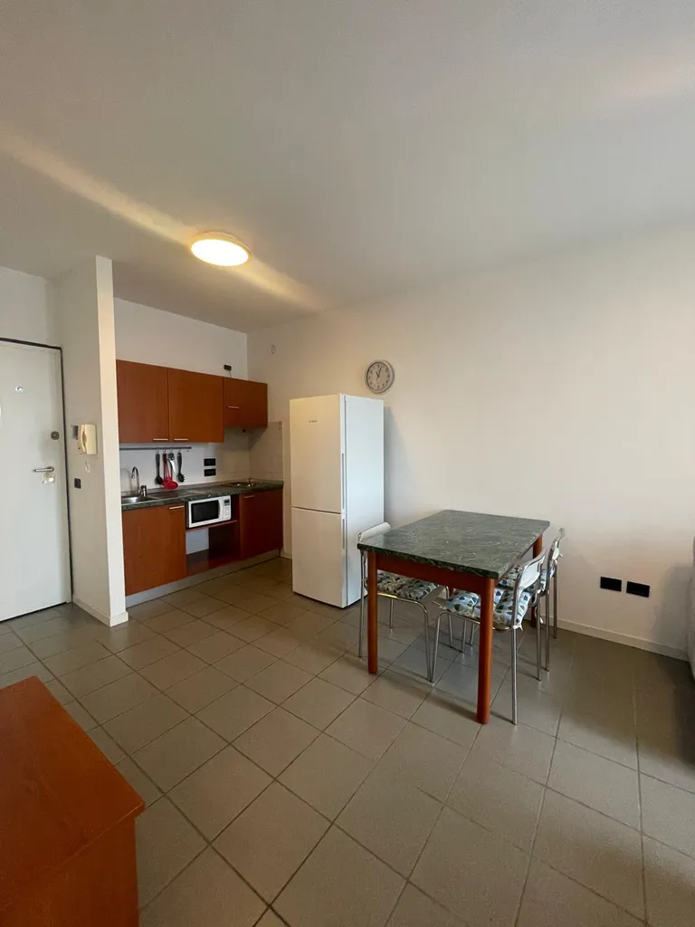 CAMPUS, al secondo piano (con ascensore) si affitta luminoso e funzionale bilocale arredato. L'appartamento si compone di: soggiorno con angolo cottura, loggia, camera matrimoniale, anti bagno (attrezzato a lavanderia) e bagno (con ventilazione forzata). Teleriscaldamento autonomo (cronotermostato in dotazione) e climatizzatore. Due posti auto riservati. Nelle spese condominiali (che ammontano a € 120 mensili) oltre ai servizi canonici, sono compresi: acqua fredda, portineria, rete WI-FI, ascensore e giardinaggio. Grazie all'ottima esposizione (sud) e alla classe energetica molto alta (A1) i consumi sono molto contenuti. Libero. Solo referenziati.