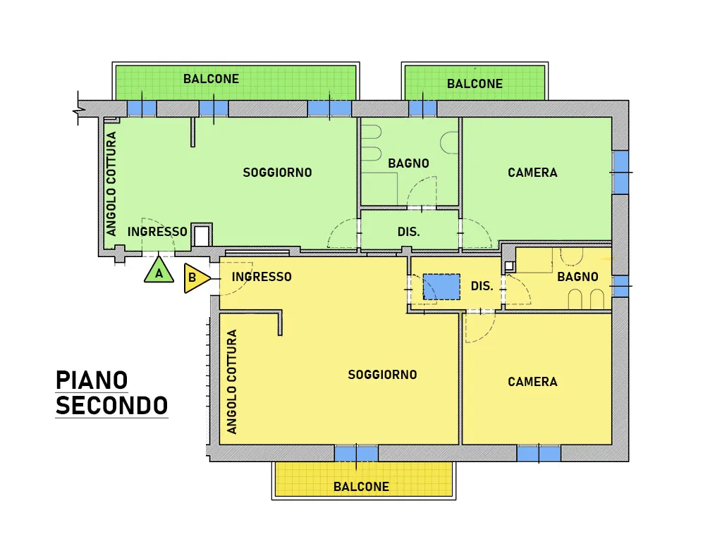 Stesso piano, metratura simile, di cui uno con cantina l'altro con sottotetto rifinito e riscaldato.