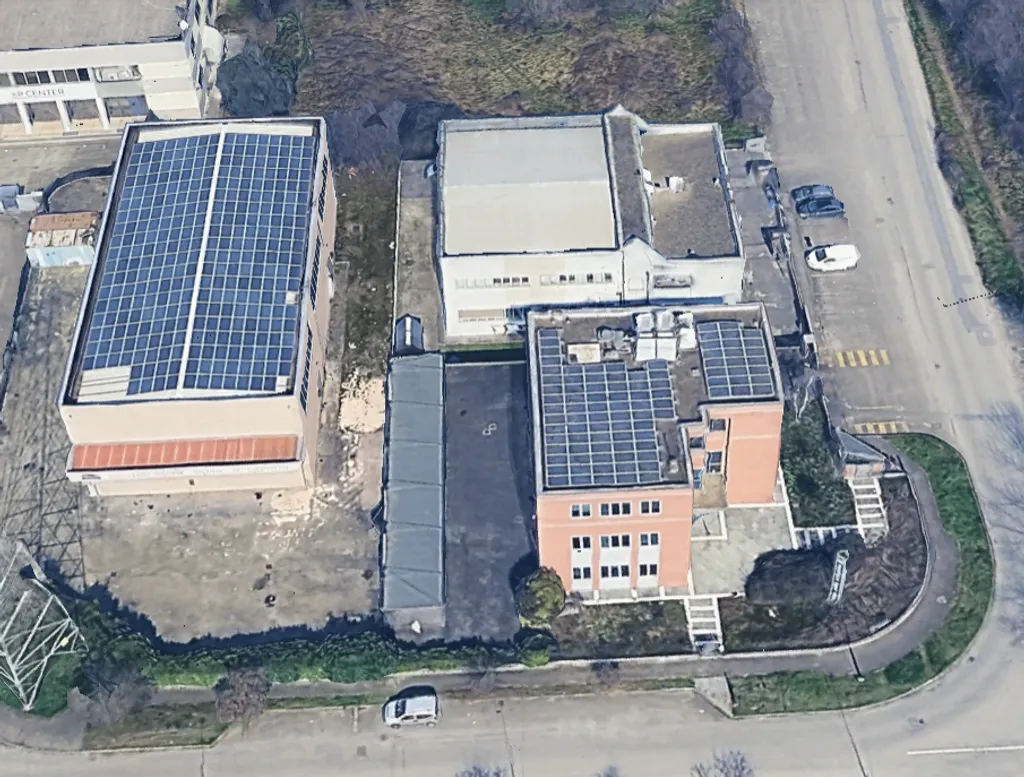 Palazzina direzionale indipendente interamente ristrutturata nel 2010 con impianti di ultima generazione per risparmio energetico riscaldamento e raffrescamento geotermico con copertura del tetto sia della palazzina che il capannone di impianti fotovoltaici con pompa di calore.
