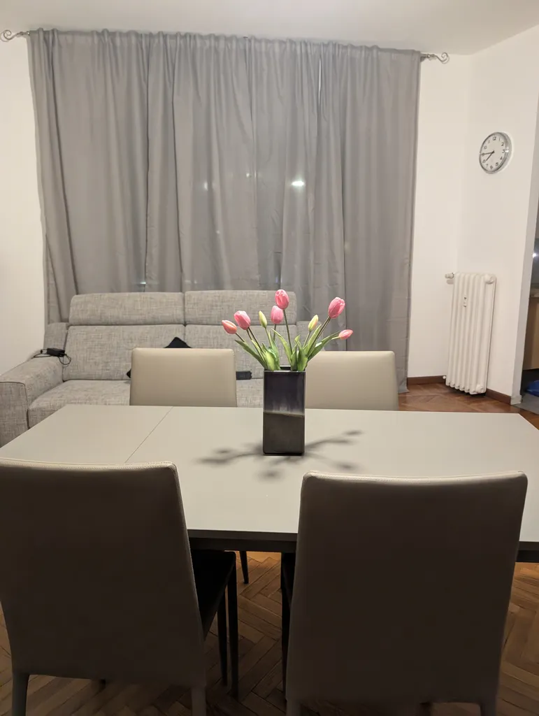 Die spaziose camere matrimoniali di cui una con bagno, ingresso spazioso, sala di 50mq con cucina a vista, finemente arredato e due balconi sulla piazza. Vista parco di ale