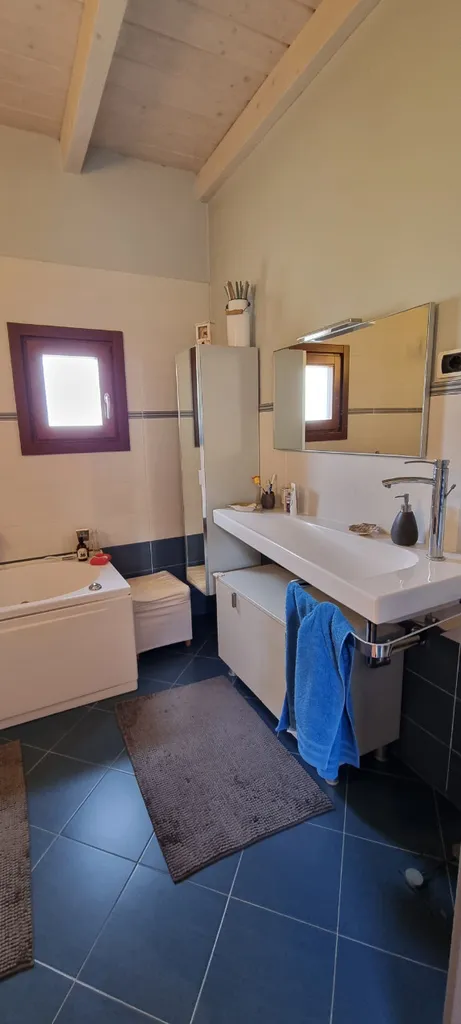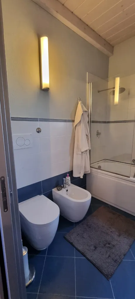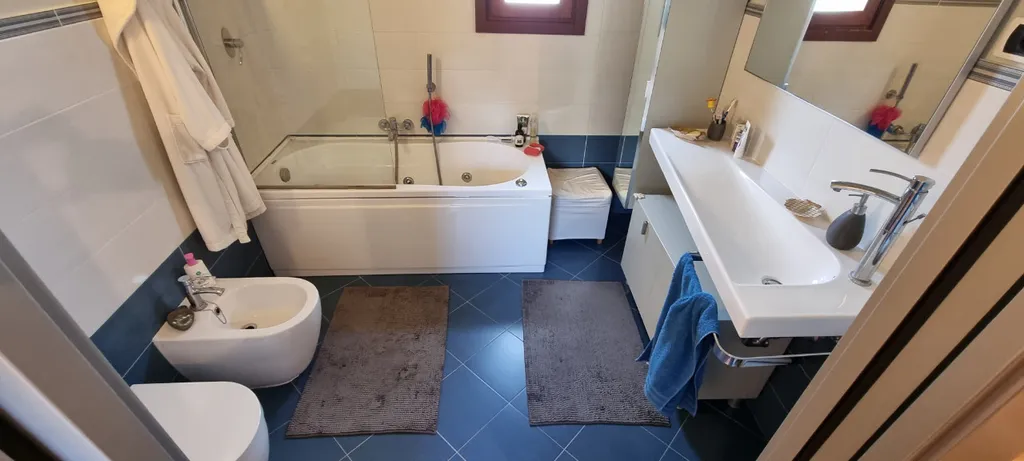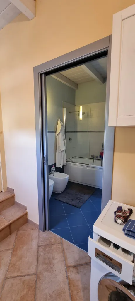 La pavimentazione è ceramica nella zona giorno e laminato nella zona notte e sottotetto.
