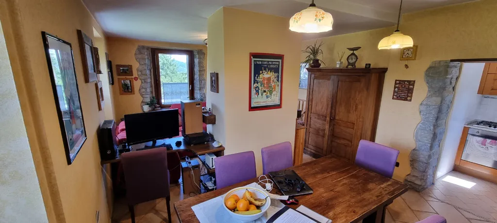 Infissi in alluminio esterno e legno in interno con vetri doppi. Scuretti in legno. La pavimentazione è in ceramica. Porta blindata.