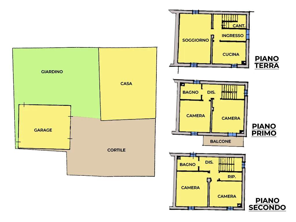 Piano terra: ingresso, soggiorno e cucina abitabile;