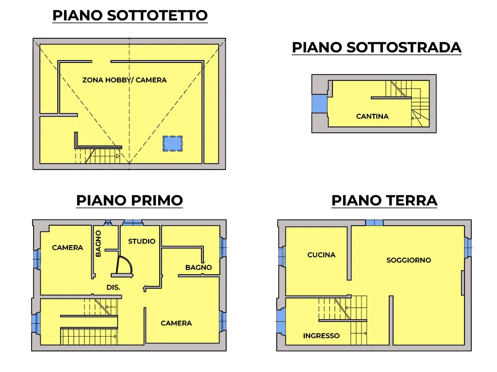 A completare la proprietà, un sottotetto ampio ottimo per zona hobby, cameretta aggiuntiva, studio.
