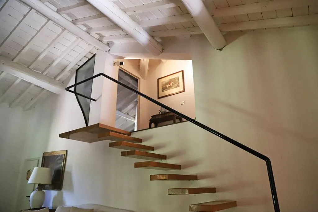 Ex fienile di 120 mq., posto sopra alla stalla, integralmente ristrutturato, collegato internamente alla casa padronale ed all esterno con altra scala, è destinato a grande zona living open space.