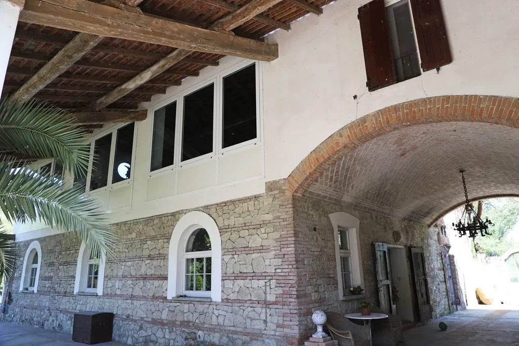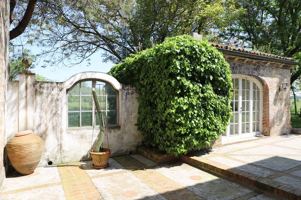 L ampia barchessa è destinata a ricovero attrezzi/magazzino ed appartamento del custode di 113 mq..