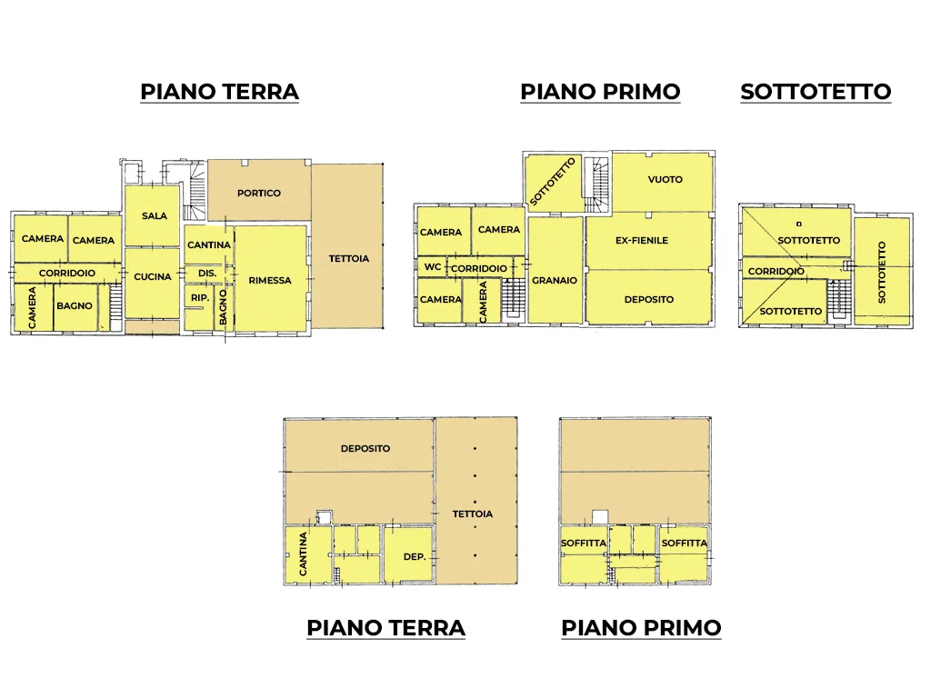 Internamente la casa è stata parzialmente ristrutturata ed è in buone condizioni, il piano terra, che è già abitabile, è composto da: salone/cucina, tre camere matrimoniali, due bagni, la cantina, una autorimessa, di 60 m², che era la vecchia stalletta, locale caldaia, poi abbiamo la scala che porta al piano primo dove abbiamo altre 4 camere da letto e un bagno, questo piano ha le finiture degli anni '70, ulteriori locali adibiti a sottotetto e la possibilità di ricavare 2 unità abitative, visto che è già sto predisposto un secondo ingresso con la sua scala in muratura per accedere al primo piano.