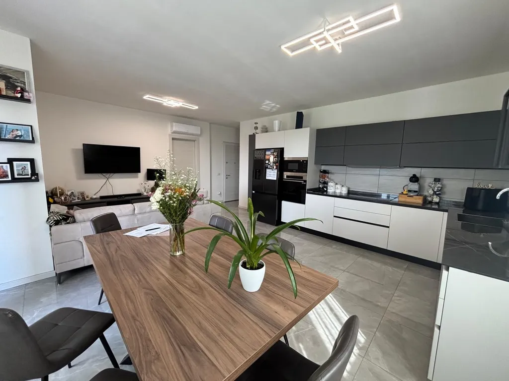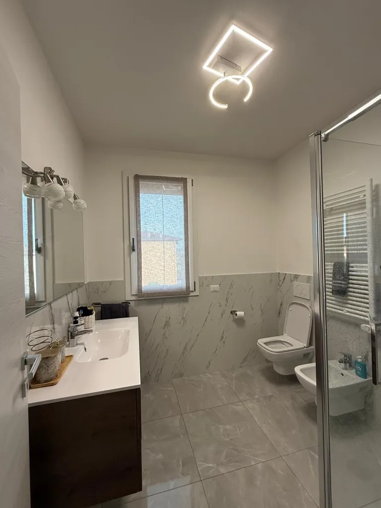 Rif. INV227 - VIA CREMONESE a due passi dalla città , in zona servitissima, tranquilla ed immersa nel verde, in modernissima palazzina, al secondo ed ultimo piano, APPARTAMENTO di mq 93 con esposizione Sud / Ovest, composto da :ingresso, salotto aperto sulla zona cottura con accesso a splendida loggia abitabile affacciata sulla campagna, due camere da letto (una matrimoniale e una singola), bagno e lavanderia/bagno, altra loggia, comoda e spaziosa autorimessa, porzione di giardino in proprietà . La costruzione del 2023 è dotata di tutte le nuove tecnologie di efficientamento termico e sismico : GESTIONE MOLTO ECONOMICA ( NO GAS, ELETTRICITà CIRCA euro 800 ANNUI ), RISCALDAMENTO A PAVIMENTO, climatizzazione con pompa di calore, finestratura a taglio termoacustico, zanzariere, tapparelle elettriche, videocitofono, porta blindata. L'immobile viene venduto con modernissimo arredamento di design su misura.