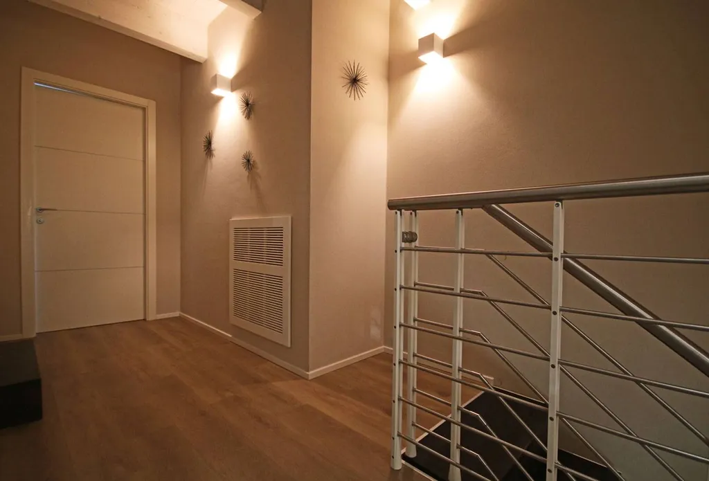 Particolare attenzione è stata dedicata alla scelta dei materiali e delle finiture: elegante pavimentazione in legno a listoni, posata a correre porte laccate di design infissi ad alte prestazioni con vetrocamera e zanzariere. Completano il quadro le dotazioni impiantistiche di alto livello, tra cui: riscaldamento e raffrescamento a pavimento, impianto di allarme volumetrico, addolcitore e videocitofono.