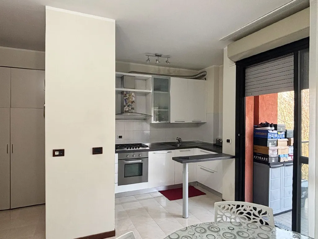 - Luminoso soggiorno con pratico angolo cottura e accesso diretto a un'ampia loggia esposta sul verde;