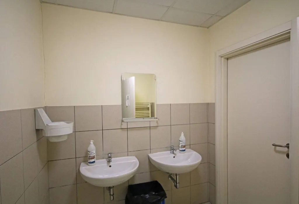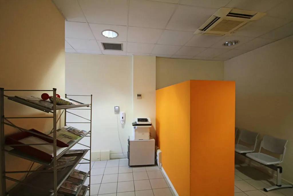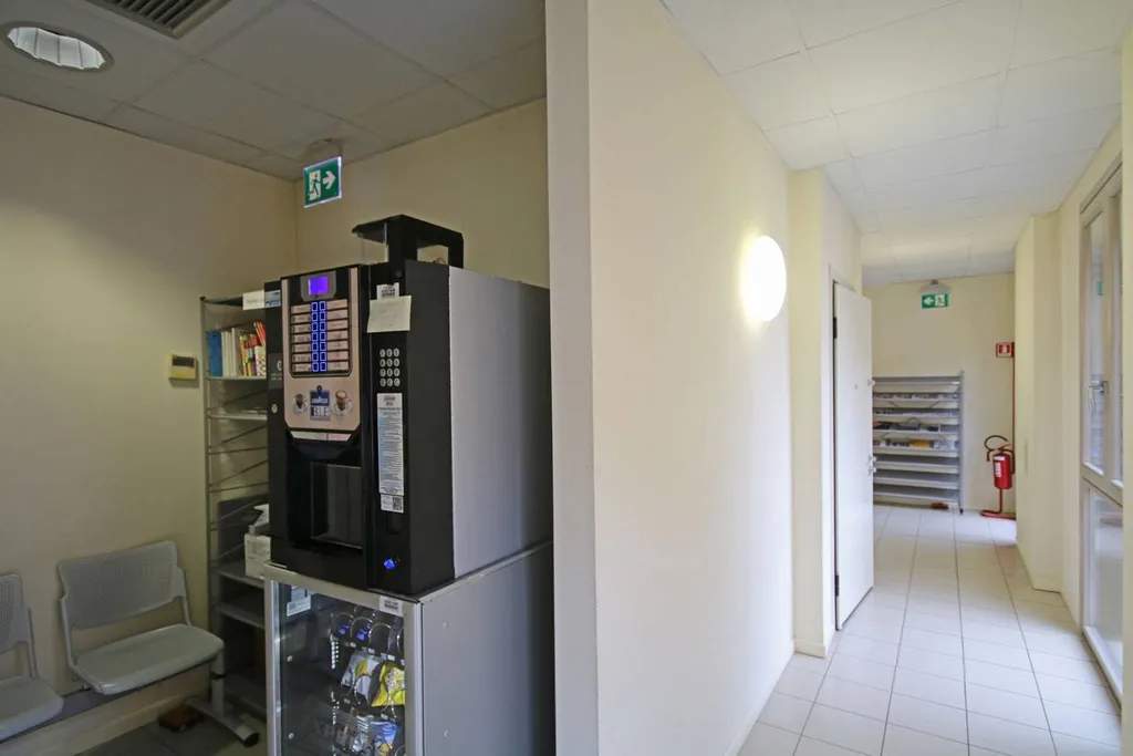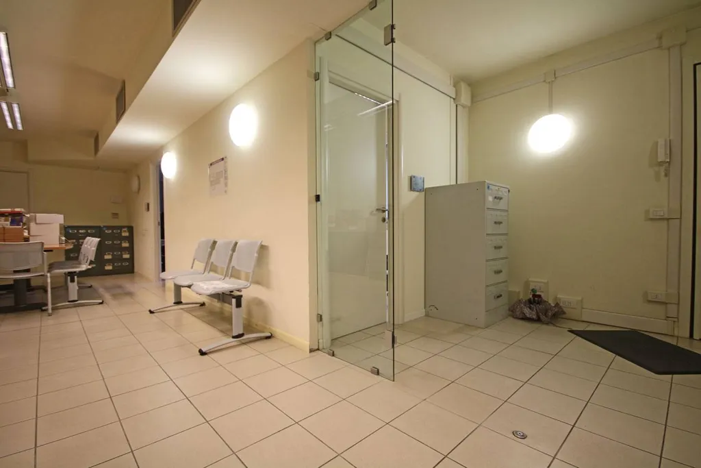 Limmobile si apre al piano terra su un ingresso open space ampio e luminoso, attualmente organizzato con postazioni dedicate al pubblico, ed è completato da due servizi e da un archivio interno. Tramite collegamento interno si accede al piano rialzato, dove si sviluppa la parte principale direzionale composta da quattordici uffici, una comoda sala dattesa, antibagno e tre ulteriori servizi.