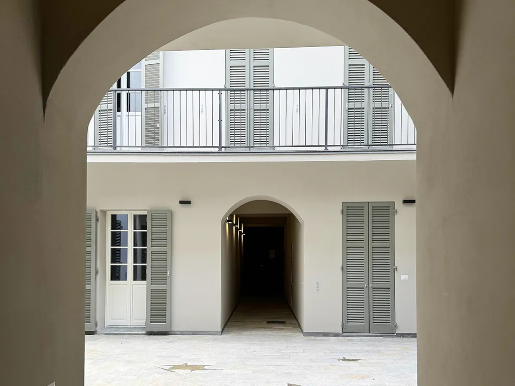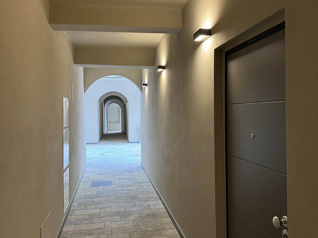 La ristrutturazione ha saputo valorizzare gli elementi storici originali, come le travi in legno e gli affreschi, che conferiscono un fascino unico agli ambienti. Il sistema di climatizzazione con tre split Daikin assicura un clima ideale in ogni stagione.