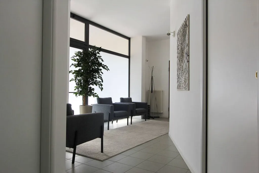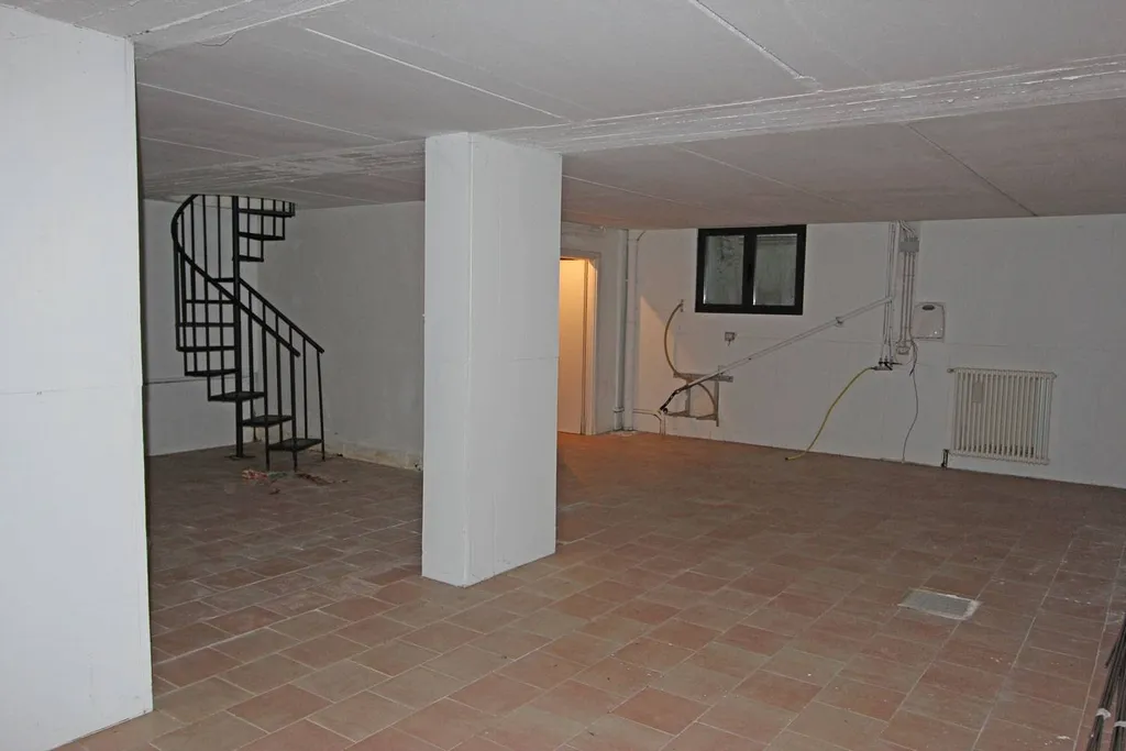 Piano Interrato (raggiunto con scala a chiocciola): ampio vano (H 2,45) open-space di 110 mq con servizio e ripostiglio, dotato di 4 finestre a bocca di lupo, impianto di riscaldamento e di una porta che accede al vano scala comune ove possibile utilizzare lascensore.