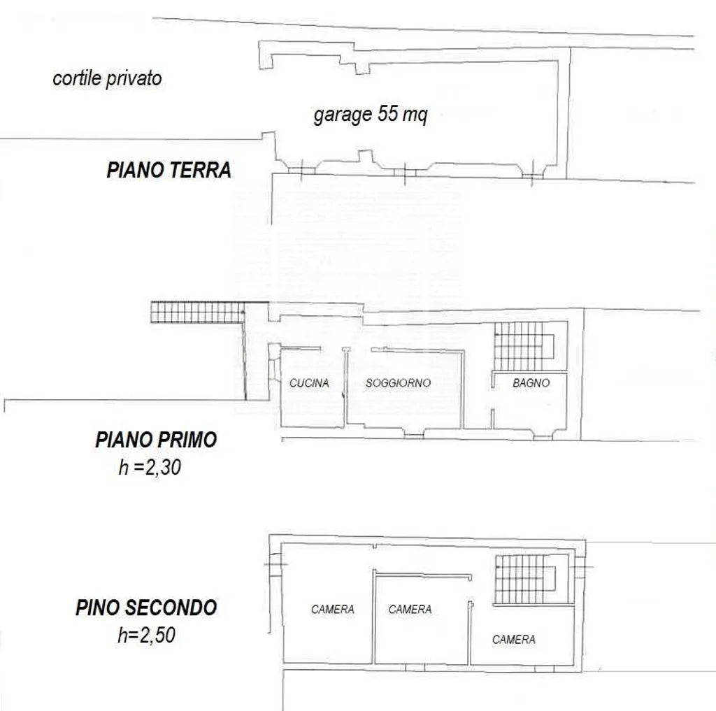 Il piano terra, completamente ristrutturato nel 2005, comprende un cortile privato che conduce a un ampio garage di 55 mq.