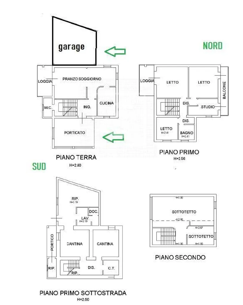 Infine al piano seminterrato, accessibile sia dall'interno che dall'esterno dell'abitazione, si trovano disimpegno, locale tecnico, due cantine, comoda lavanderia con doccia e diversi rispostigli. Completano la proprietà un garage doppio di 35 mq con basculante elettrico ed un posto auto.