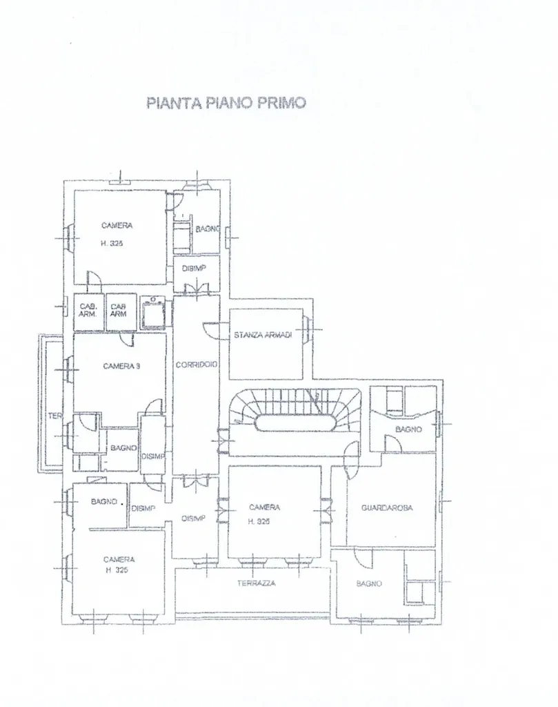 1°piano: dedicato a zona notte: master bed room, servita da terrazzo, doppi servizi e cabine armadi, 3 camere da letto matriminiali en suite e guardaroba, ulteriore stanza armadi.