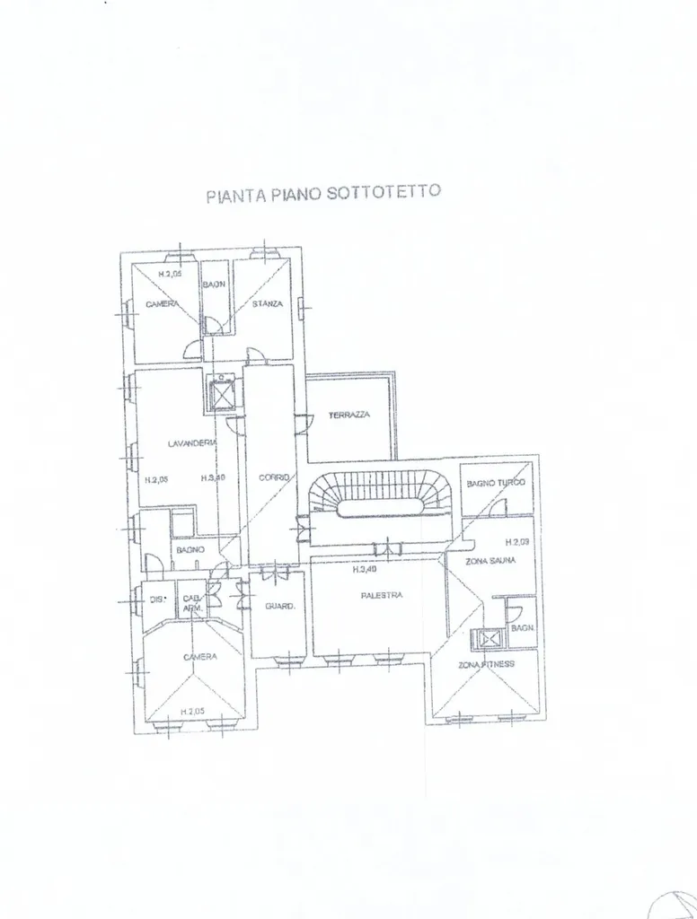 2° piano: area relax, composta da: sala cinema, palestra, sauna, bagno turco. Altra camera matrimoniale en sui con cabina armadi. Ampio locale lavanderia, stireria.