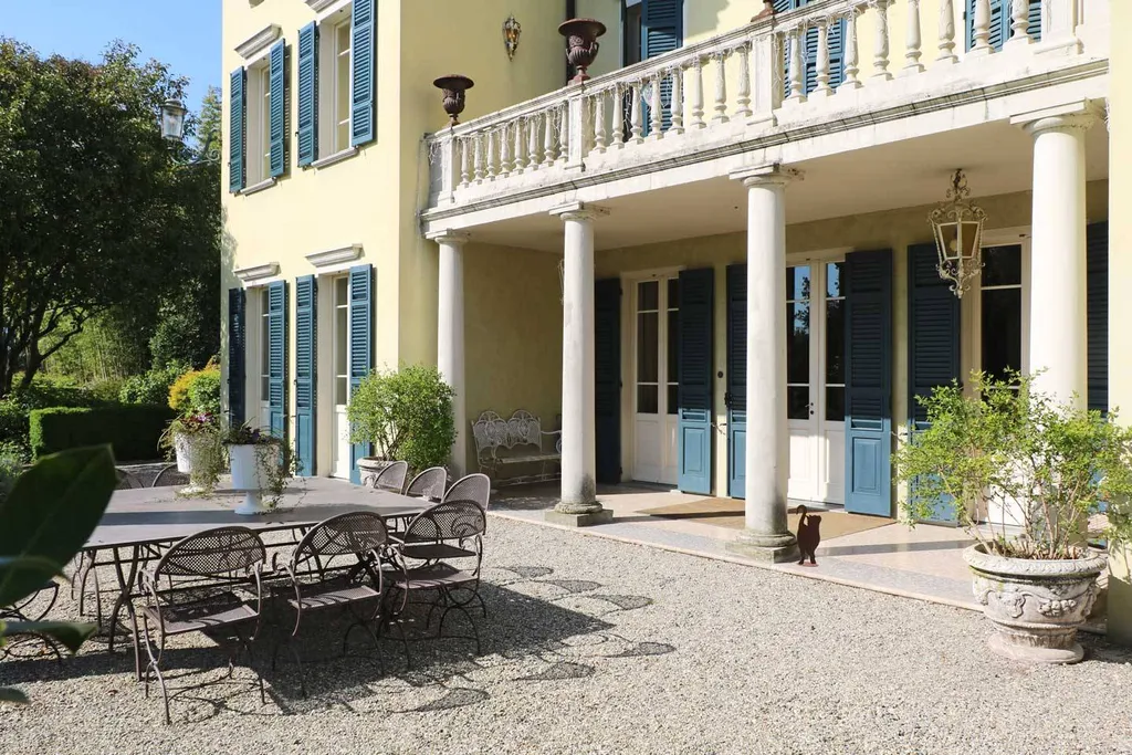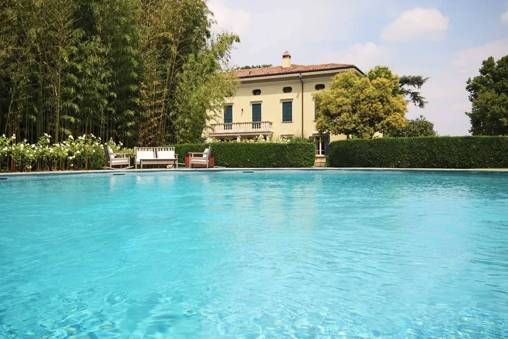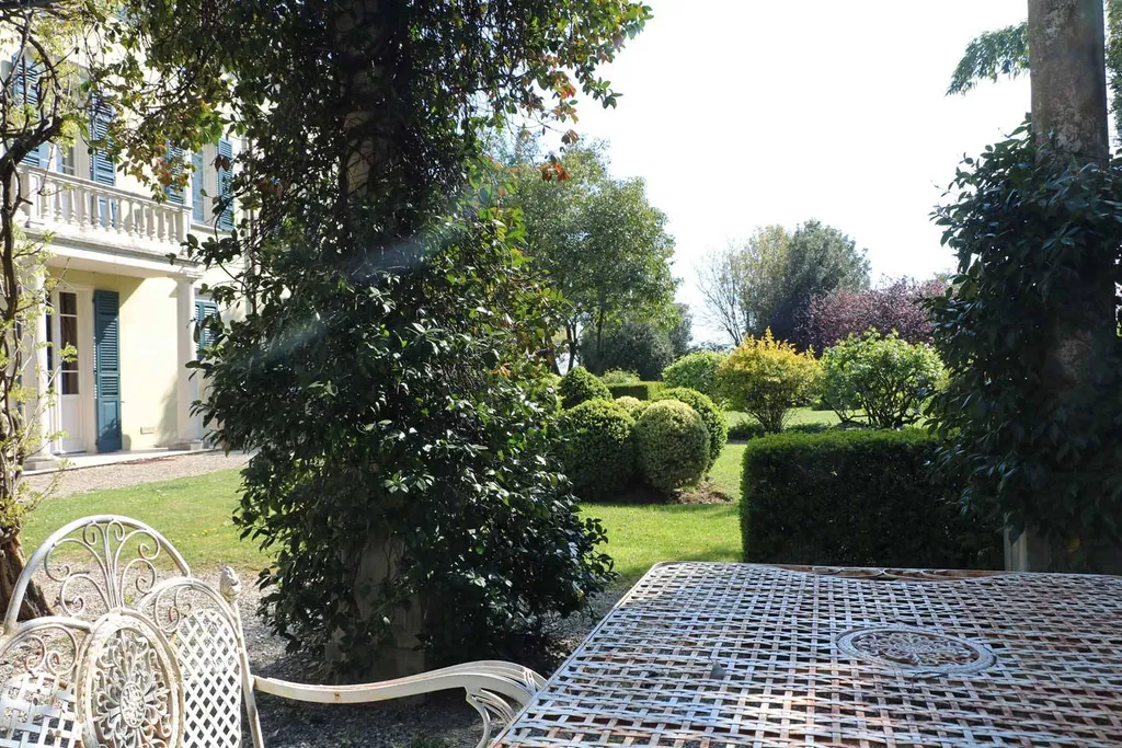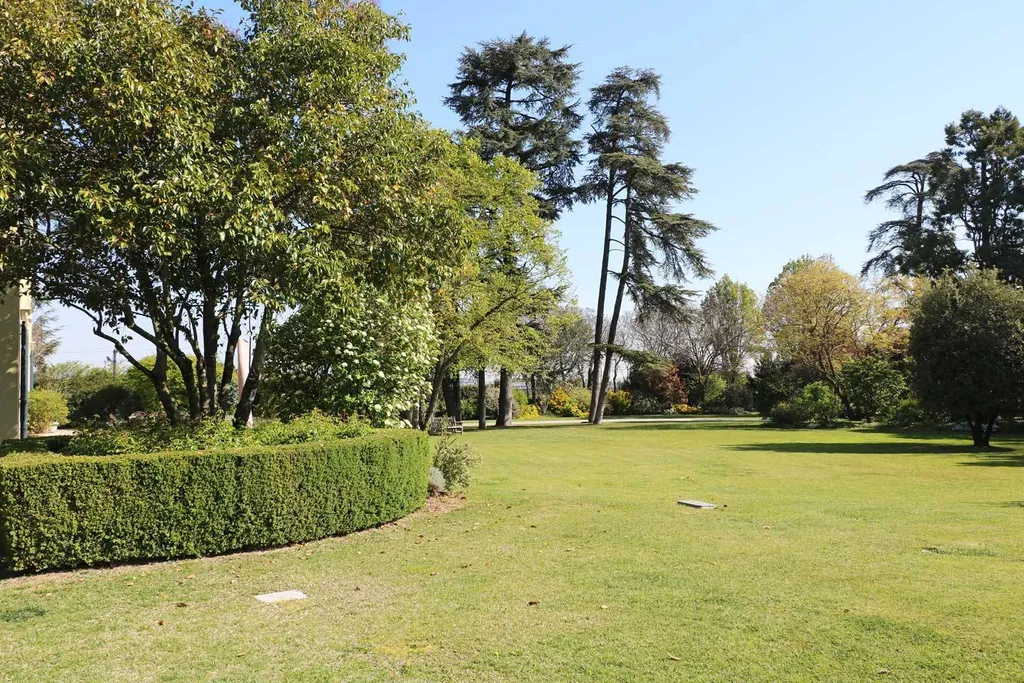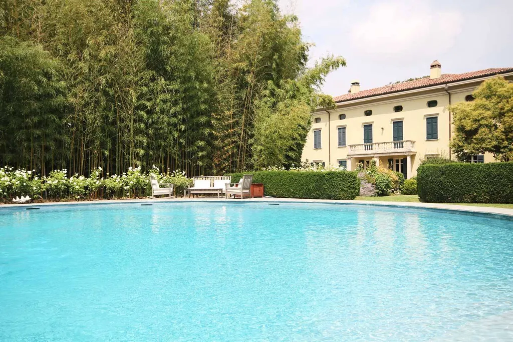 Il paesaggista inglese Holmes ha tracciato la narrazione del parco che vive di un perfetto equilibrio nellorganizzazione dei suoi spazi mossi che integrano armoniosamente piscina e campo da tennis. Anche gli interni riportano la firma importante dellarchitetto Camillo Bianchi nella ristrutturazione che ha infuso nuova vita alla dimora anticamente nota come Villa Zanchi.