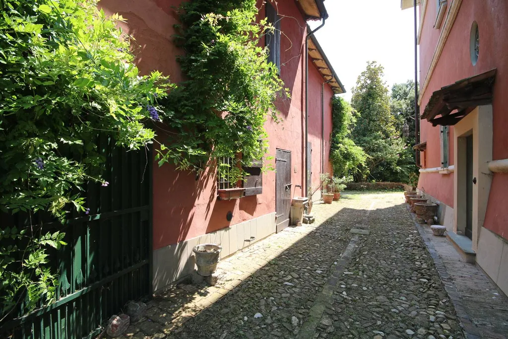Il rustico attiguo è composto da locali per rimessa attrezzature e manutenzione del giardino, autorimessa, oltre ad un appartamento di 120 mq., posto al 1° piano.