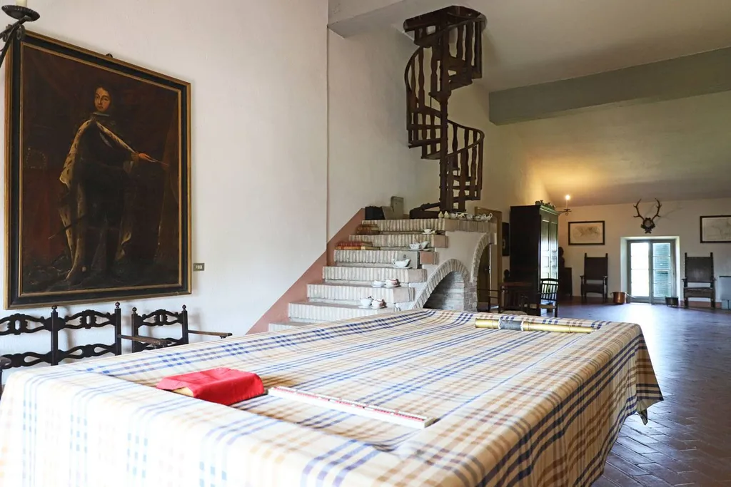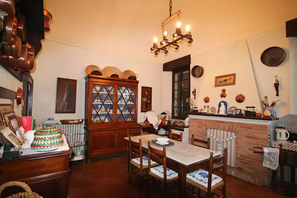 Le prime colline si affacciano allorizzonte che si ammira nella sua circolarità dalla torretta che sormonta centralmente i tre piani della casa. Ogni livello spaziosissimo, completo e arioso, presenta una forte e dichiarata identità, riporta una storia che si respira e seduce vista e cuore.