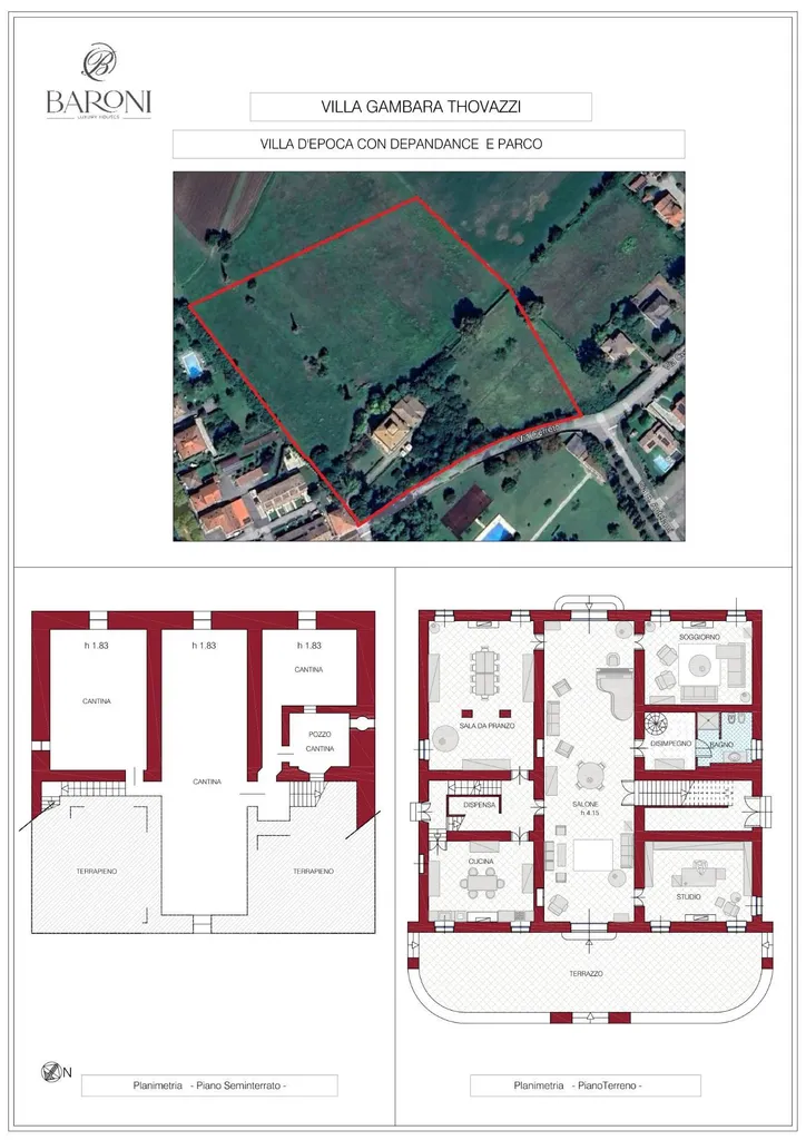 A 100 mt. dalla piazza del paese, proponiamo affascinante VILLA edificata alla fine del 700, servita da DEPANDANCE, AVVOLTA IN 4000 mq. di PARCO e 3 ettari di terreno agricolo.